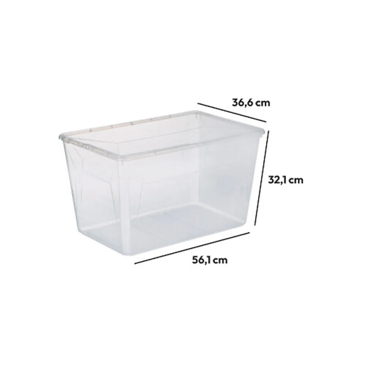 Caja De Almacenaje 50L Simply | 32.1×56.1×36.6cm | Conoce este y más artículos que tenemos disponibles para tu hogar. ¡Ordenar y organizar nunca ha sido tan fácil! Descubre la gama de almacenaje hôma | Color: Transparente | Medidas: 32.1×56.1×36.6cm | Material: Polipropileno | Capacidad: 50L