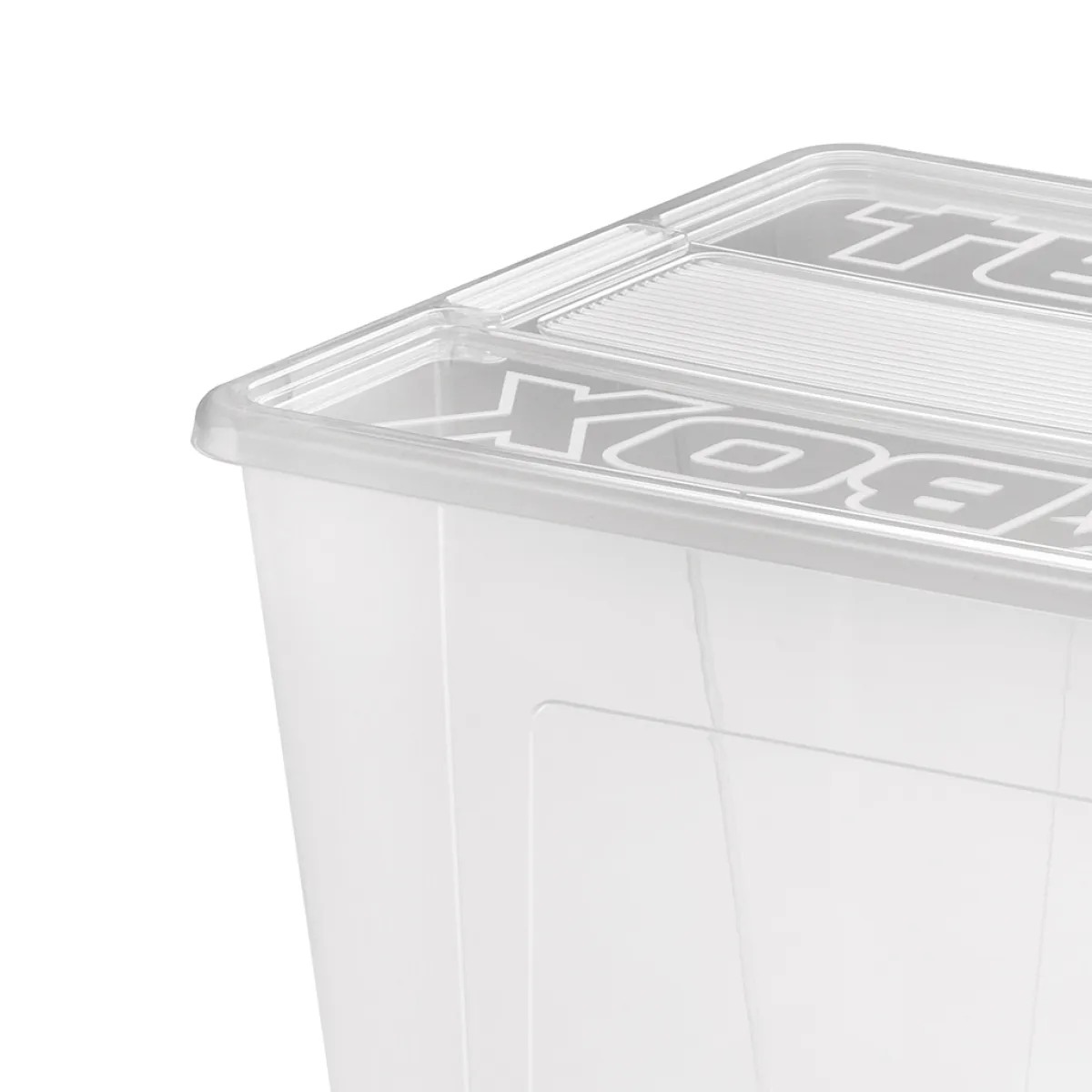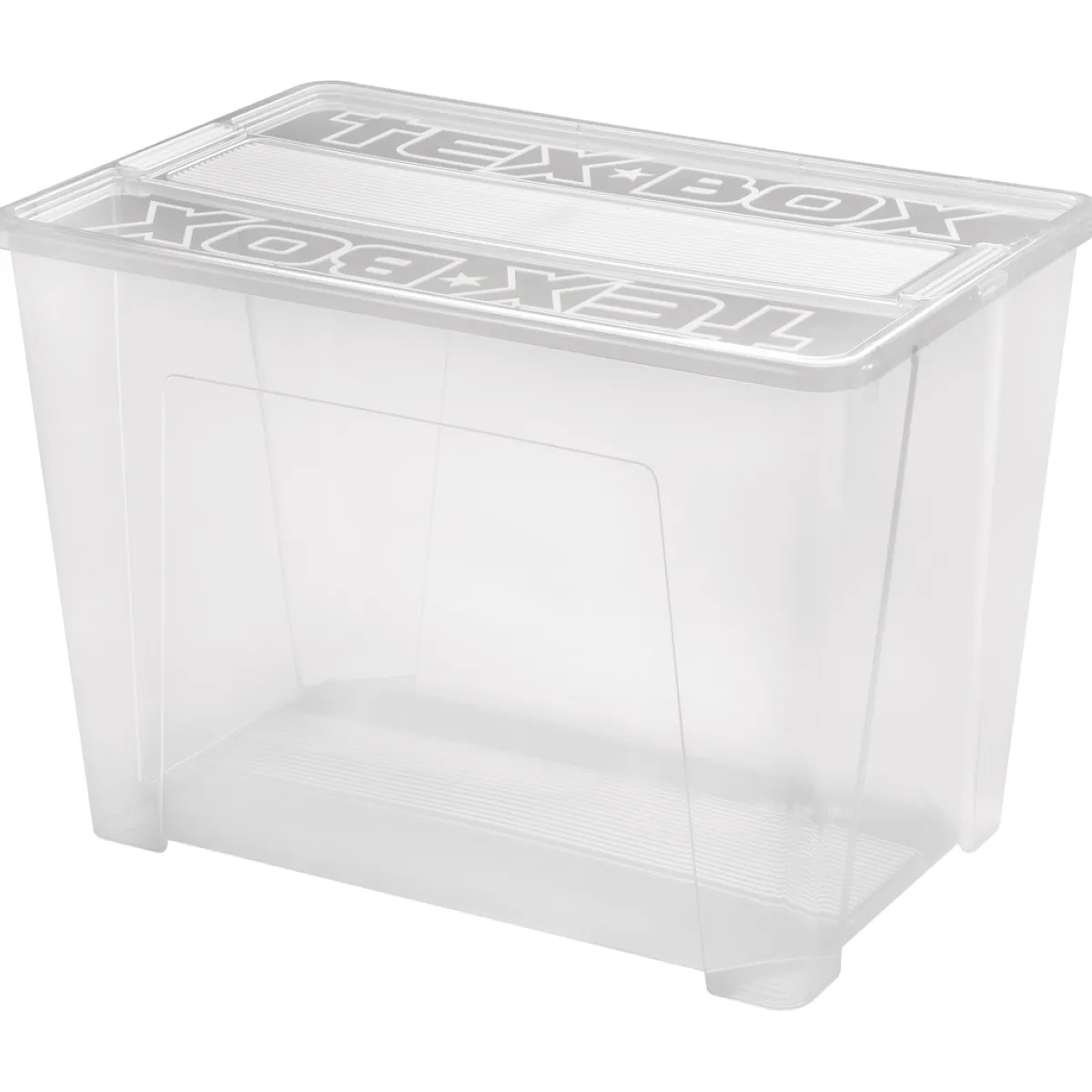 Caja de almacenaje TEX-BOX 70L | Conoce este y los demás artículos que tenemos disponibles para tu hogar. ¡Ordenar y organizar nunca ha sido tan fácil! Descubre la gama de almacenaje hôma | Color: Transparente | Medidas: 39.5×57.5x38cm | Capacidad: 70L | Material: Pvc