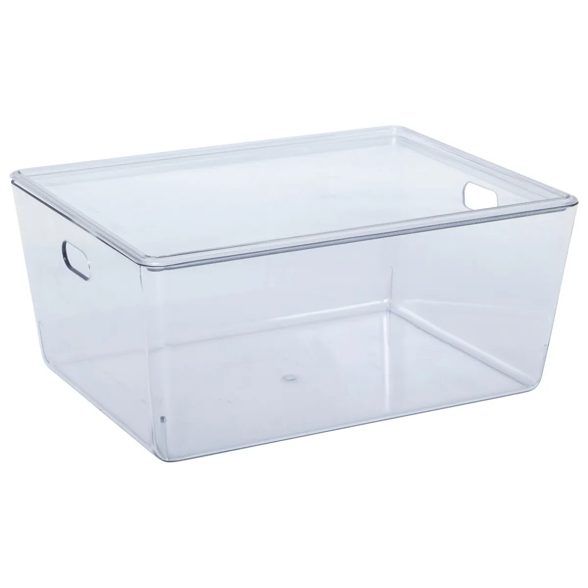 Caja organizadora SELENA con tapa 11l | 15.3x35x26cm | Conoce este y más artículos que tenemos disponibles para tu closet . Almacenar y organizar tus armarios y roperos nunca fue tan fácil. Descubre la gama de Organización hôma | Color: Transparente | Medidas: 15.3x35x26cm | Material: PET, Polipropileno | Capacidad: 11L | Marca: 5Five | Colección: Selena