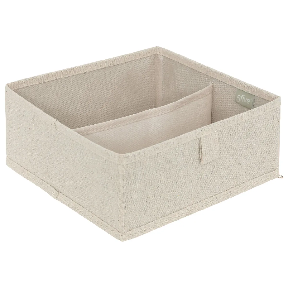 Caja de almacenaje DRESSY con 2 compartimientos tamaño S | Conoce este y más artículos que tenemos disponibles para tu closet . Almacenar y organizar tus armarios y roperos nunca fue tan fácil. Descubre la gama de Organización hôma. | Color: Beige | Medidas: 10.2X25X24cm | Material: Poliéster