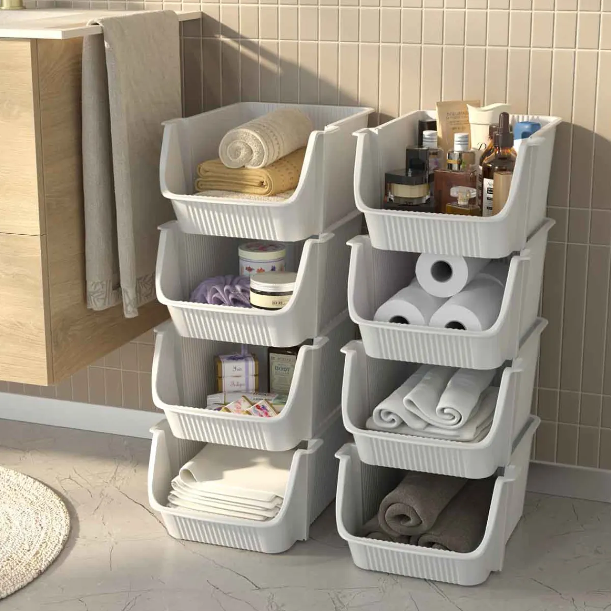 Juego 4 cestas de almacenaje gris claro | 25.8×29.8×39.4cm | Descubre este y más artículos que tenemos disponibles para tu hogar. ¡Ordenar y organizar nunca ha sido tan fácil! Descubre la gama de almacenaje hôma | Color: Gris claro | Medidas: 25.8×29.8×39.4cm | Material: Polipropileno