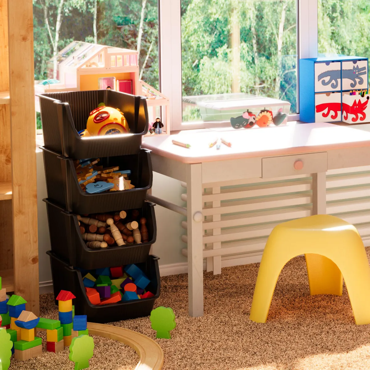 Juego de 4 cestos de almacenaje gris oscuro | 25.8×29.8×39.4cm | Descubre este y más artículos que tenemos disponibles para tu hogar. ¡Ordenar y organizar nunca ha sido tan fácil! Descubra la gama de almacenaje hôma | Color: Gris oscuro | Medidas: 25.8×29.8×39.4cm | Material: Polipropileno