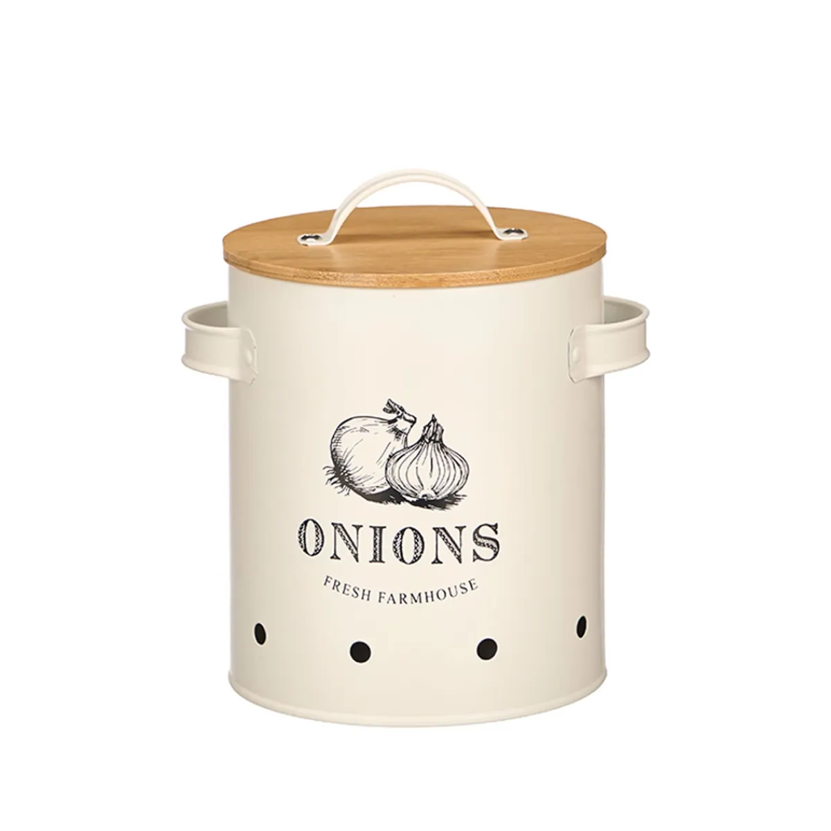 Cajas Y Frascos>Caja para cebollas crema metálica con tapa bambú
