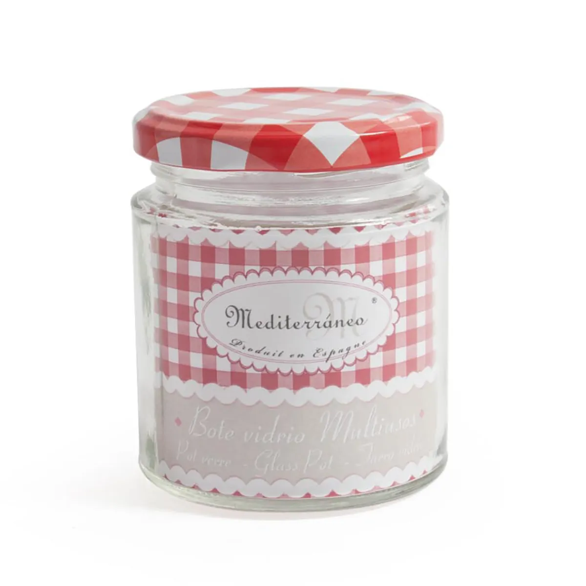 Frasco Vidrio Con Tapa Decorada 250Cc | 8.5x7x7cm | ¿Sabías que tu cocina puede ser el lugar más feliz del mundo? Echa un vistazo a nuestra gama de utensilios para una cocina llena de Happy Home Living. ¡Cocinar con los utensilios adecuados es mucho más fácil! | Color: Transparente | Medidas: 8.5x7x7cm | Material: Vidrio, Metal | Capacidad: 250ml