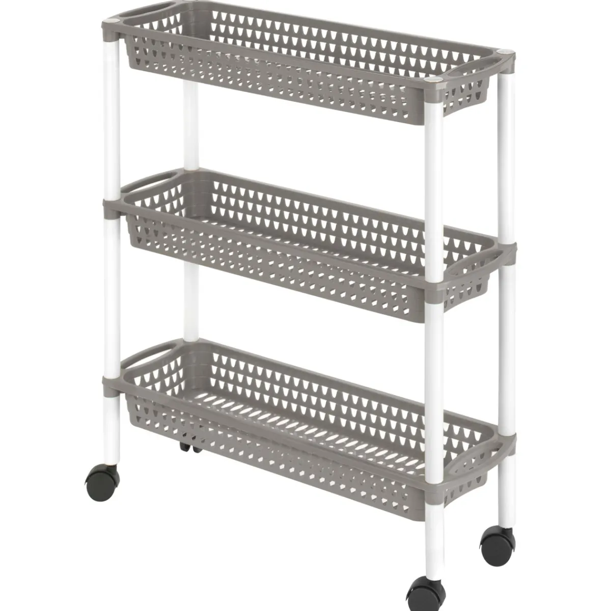 Carrito auxiliar con 3 cestos y ruedas | 62.5x18x58cm | Cuida de la higiene y de la limpieza de tu hogar con los accesorios y productos adecuados, para que disfrutes siempre de un ambiente limpio y sano. En la sección de Limpieza de las tiendas hôma encontrarás todos los productos y utensilios de limpieza que tu hogar necesita | Color: Gris, Blanco | Medidas: 62.5x18x58cm | Material: Pvc