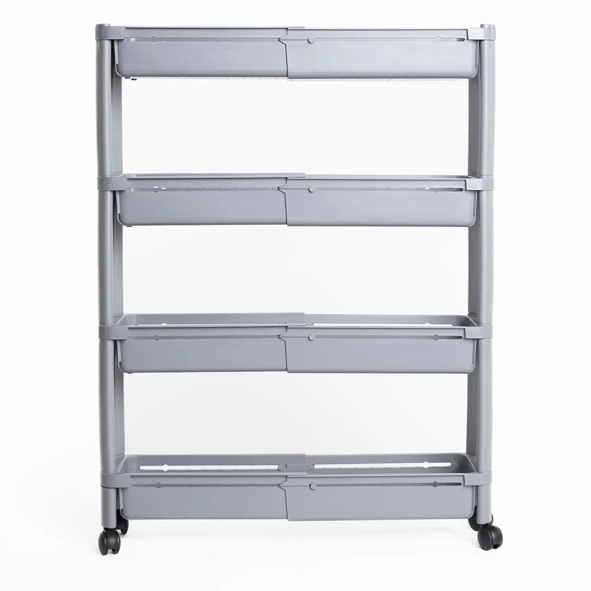 Carrito auxiliar gris extensible con 4 cestos | 78,5x15x37.5cm | La funcionalidad de la cocina es esencial y comienza por las soluciones de organización en la cocina. Desde el carrito auxiliar , la botellera, los cubos de basura, hasta cubos de reciclaje, encuentra todo en homastores.com | Medidas: 78.5x15x37.5cm | Material: Polipropileno
