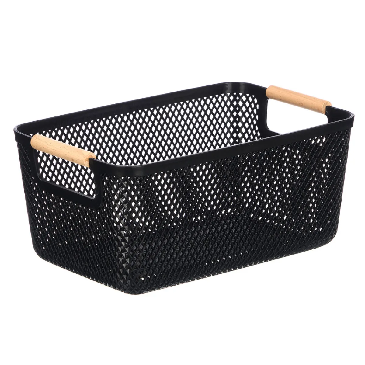 Cesto negro con asa de bambú 36x22cm | Descubre este y otros artículos de la gama de Organización hôma. Los nuevos artículos de Almacenaje para el lavadero y el trastero harán que consigas sacar el mejor provecho de tus espacios. | Color: Negro | Medidas: 16.8x22x36.2cm | Material: Polipropileno y Bambú