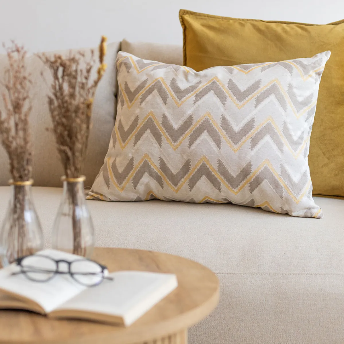 Almohada VIBES amarillo y beige 45x60cm | La colección textil hôma reúne propuestas únicas para personalizar tu casa. Desde cojines decorativos y fundas de cojín hasta las mantas más confortables, ¡ Vive en tu hogar con comodidad ! | Color: Amarillo, Beige | Medidas: 45x60cm | Material: Poliéster