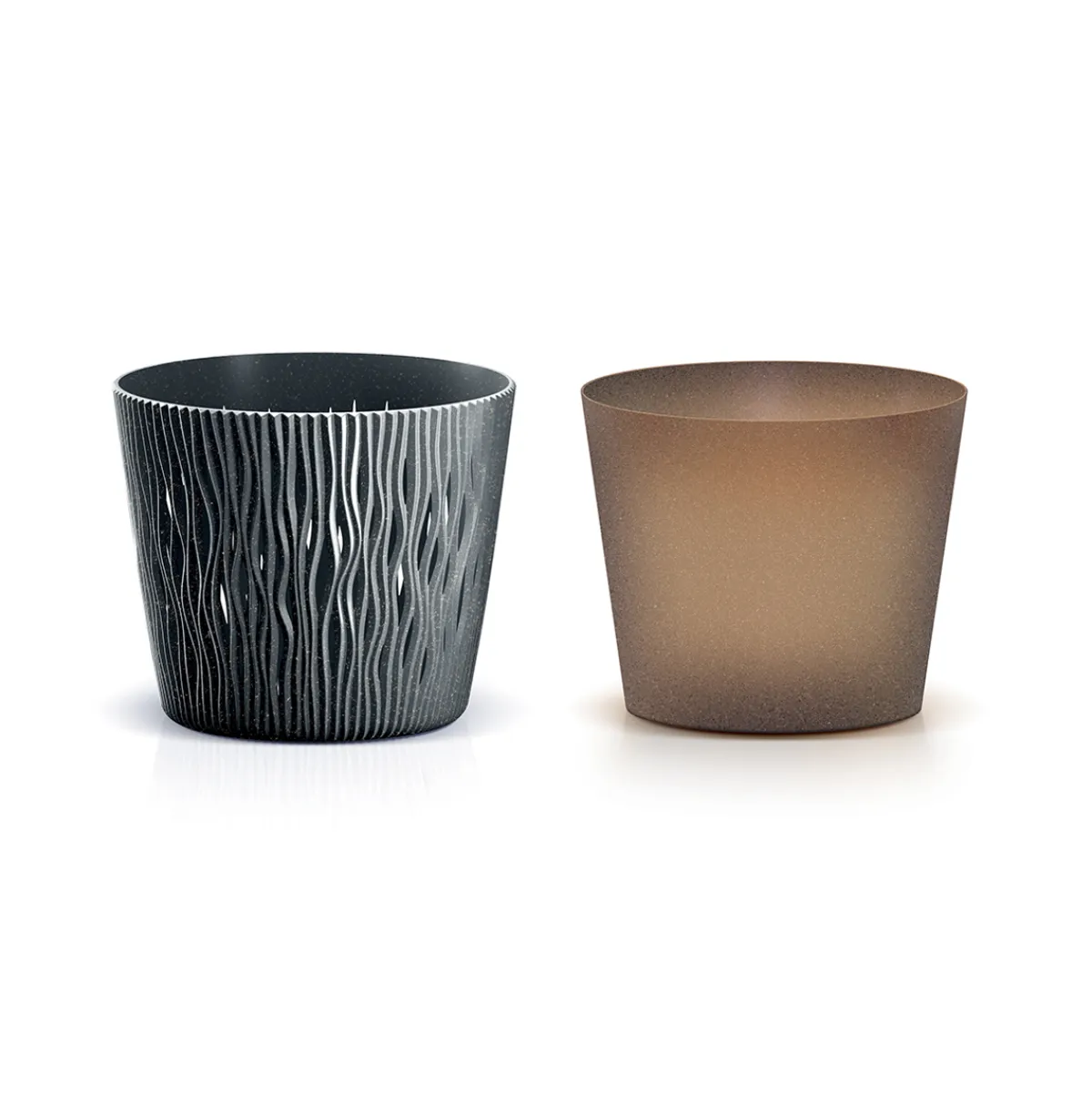 Maceta Sandy Round Antracita | 19x17cm | Medidas: 19x17cm | Material: Plástico y hasta 33% Madera | Producto Ecológico
