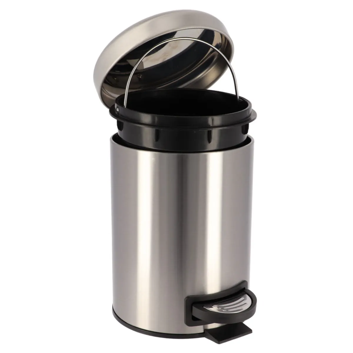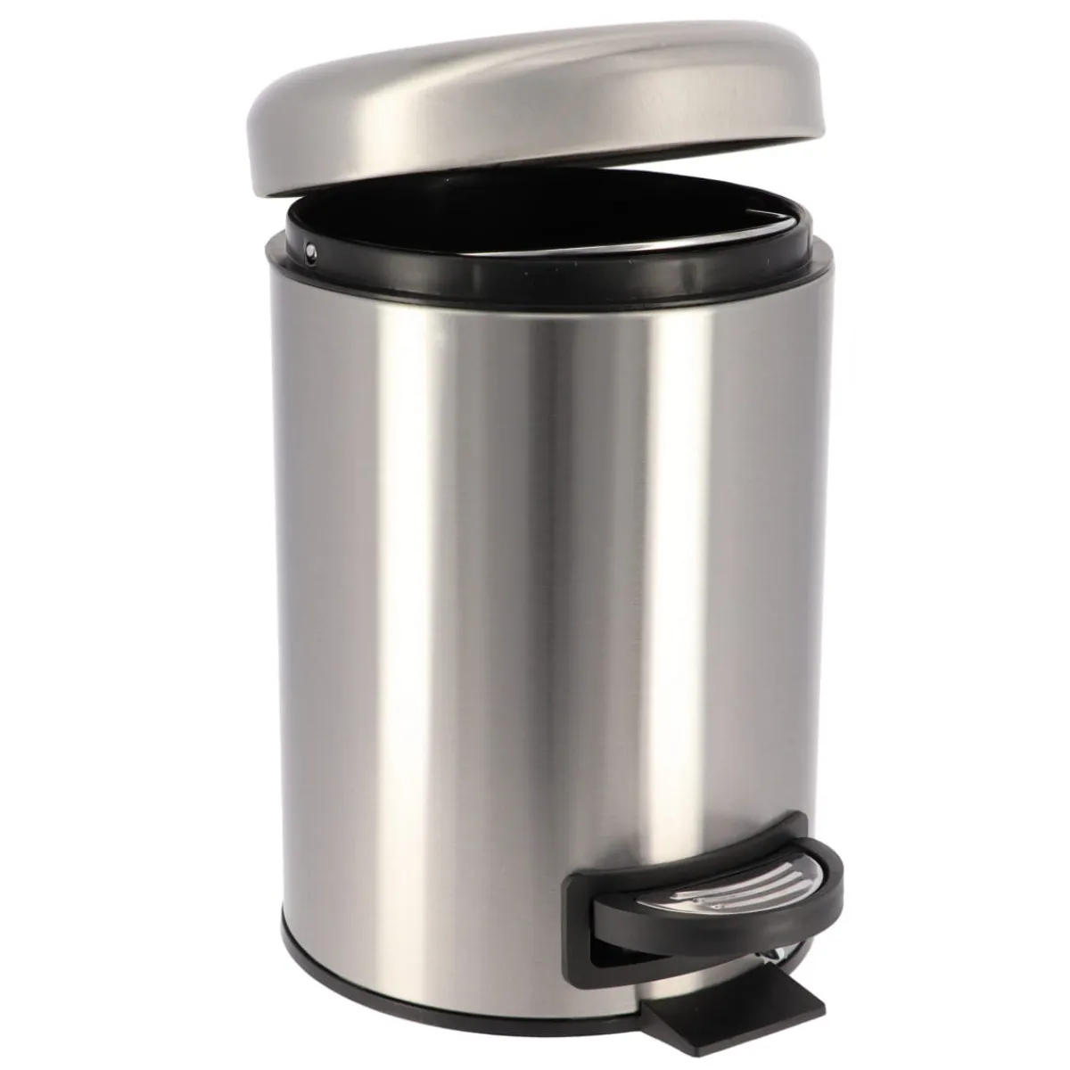 Cubo De Basura Para Baño Con Cierre Suave 3L | Los accesorios y la organización del baño son esenciales para que tus rutinas más personales te traigan todo el bienestar que te mereces. ¡Conoce nuestra colección de accesorios para el baño! | Color: Plateado | Medidas: 25.5x23x17cm | Material: Metal | Capacidad: 3L