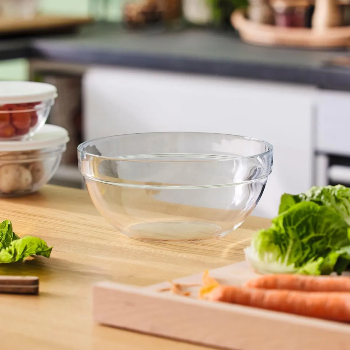 Ensaladera De Vidrio Redonda Apilable 20cm | ¿Sabías que tu cocina puede ser el lugar más feliz del mundo? Echa un vistazo a nuestra gama de utensilios para una cocina llena de Happy Home Living. ¡Cocinar con los utensilios adecuados es mucho más fácil!