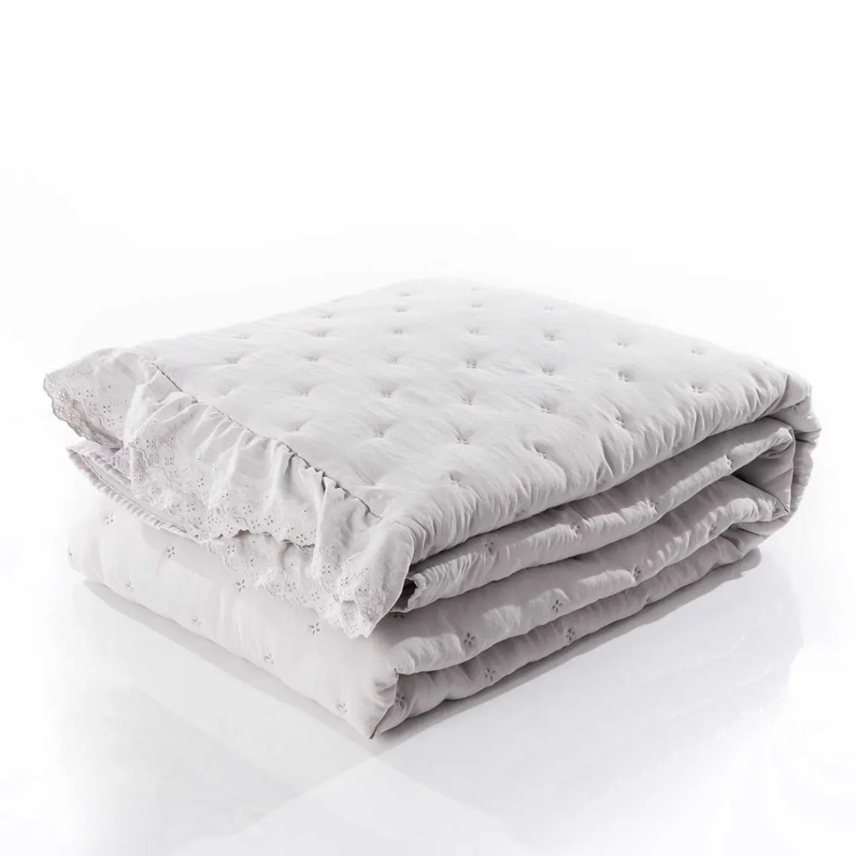 Edredones Y Colchas>Edredón AMALFI gris con encaje 250x260cm