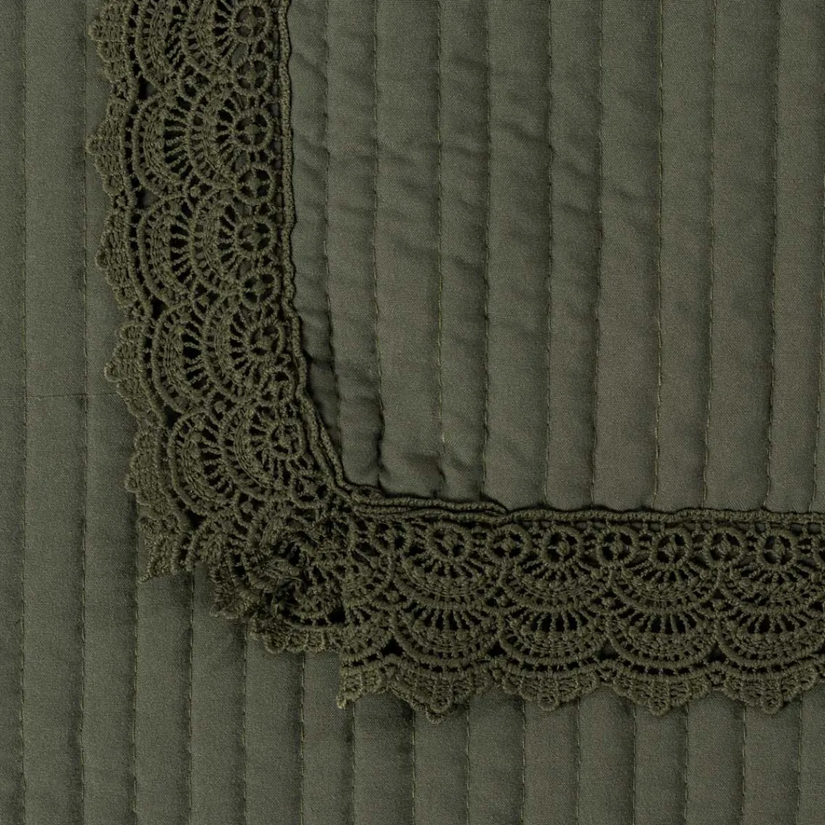 Edredón verde con volante de encaje 220x240cm | ¡Encuentre aquí todo lo necesario para un sueño reparador! Descubra nuestra colección de textiles para el hogar con propuestas de ropa de cama muy confortable: edredones, fundas, colchas, sábanas, almohadas para dormir… | Color: Verde | Medidas: 220x240cm | Material: Microfibra, Poliéster