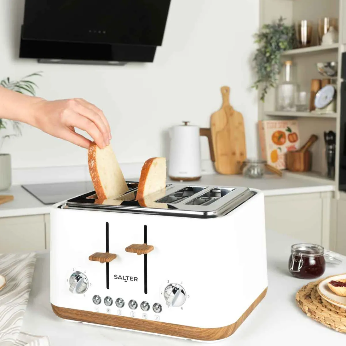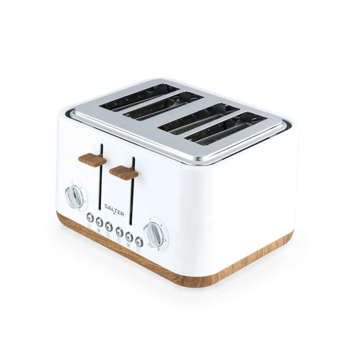 Tostadora 4 rebanadas SALTER TORONTO blanca | Potencia máxima: 1630w | Funciones descongelar y recalentar. 6 posiciones de calor. Con bandeja recogemigas fácil de extraer. ¿Sabías que tu cocina puede ser el lugar más feliz del mundo? Descubre nuestra gama de utensilios para una cocina llena de Happy Home Living. Cocinar con los utensilios adecuados es mucho más fácil. | Color: Blanco | Medidas: 24.2×32.6×36.4cm | Material: Acero inoxidable