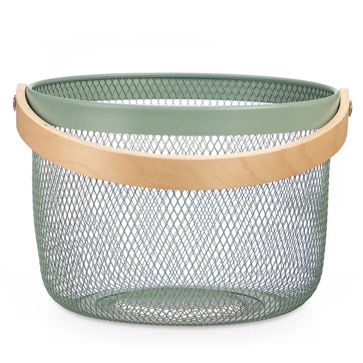 Cesta redonda de metal verde 25.5cm | ¿Sabías que tu cocina puede ser el lugar más feliz del mundo? Descubre nuestra gama de utensilios para una cocina llena de Happy Home Living. ¡Cocinar con los utensilios adecuados es mucho más fácil! | Color: verde | Medidas: 25.5×25.5x16cm | Material: metal, madera