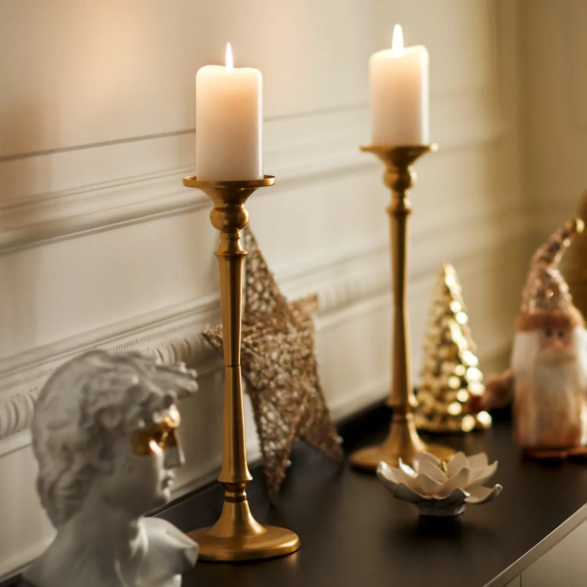 Portavelas Dorado Verso De Metal | 13x13x39cm | Descubre nuestra gama de portavelas y encuentra el que mejor se adapte a la decoración de tu hogar. | Color: Dorado | Medidas: 39x13x13cm | Material: Metal