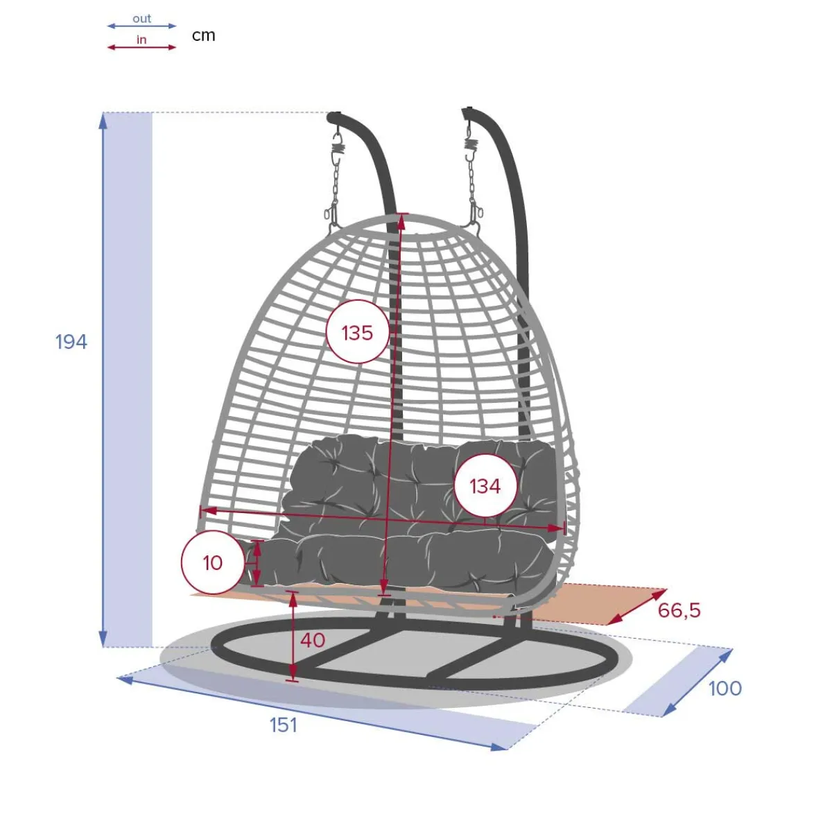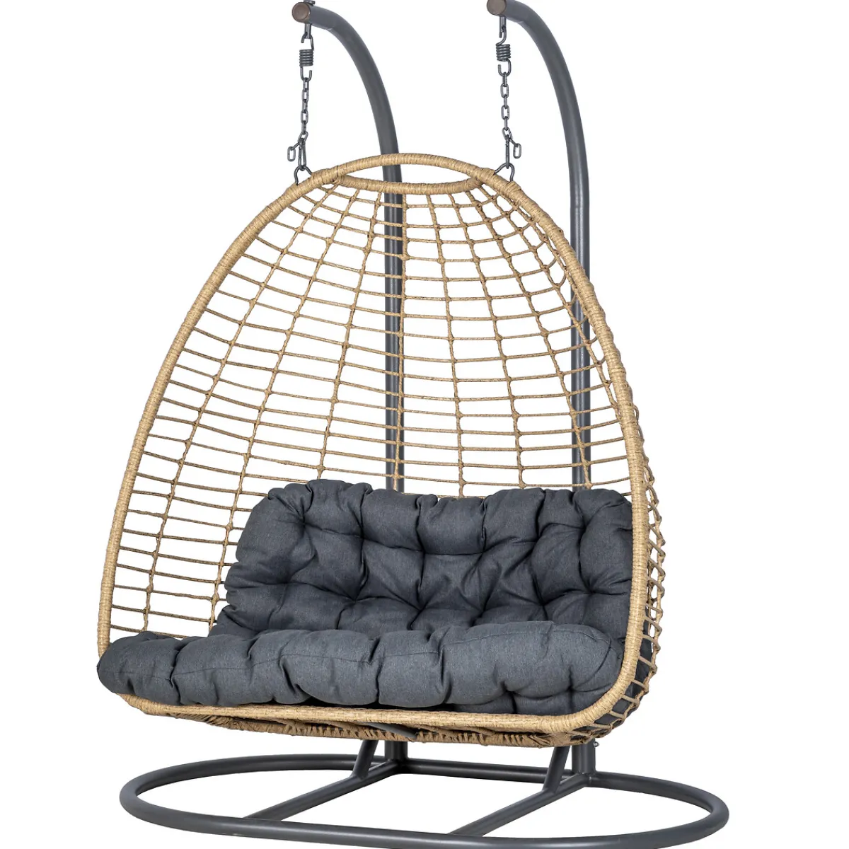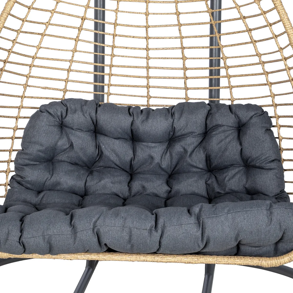 Columpio AJAR de ratán 2 plazas | 194x100x151cm | Estructura con tratamiento epoxi antioxidante | Estructura tratada con galvanoplastia anticorrosión | Tejido con tratamiento hidrófugo que permite que el agua resbale sin penetrar en el material | Peso máximo 220kg | Color: Natural, Gris oscuro | Medidas: 194x100x151cm | Material: Acero, Ratán | Marca: Hespéride