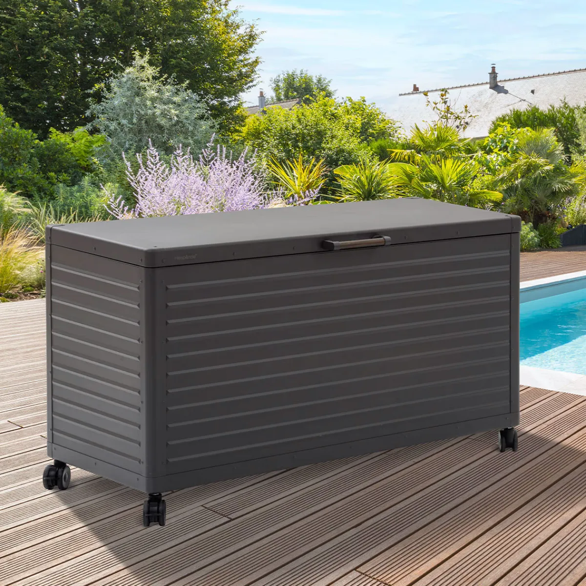 Baúl de acero gris EDENIO | 130x78x60,4cm | Estructura tratada con epoxi antioxidante. Cierre de la tapa con 2 cilindros. Fácilmente maniobrable gracias a sus 4 ruedas. 500L | Color: gris | Medidas: 130x78x60.4cm | Material: Acero | Marca: Hespéride