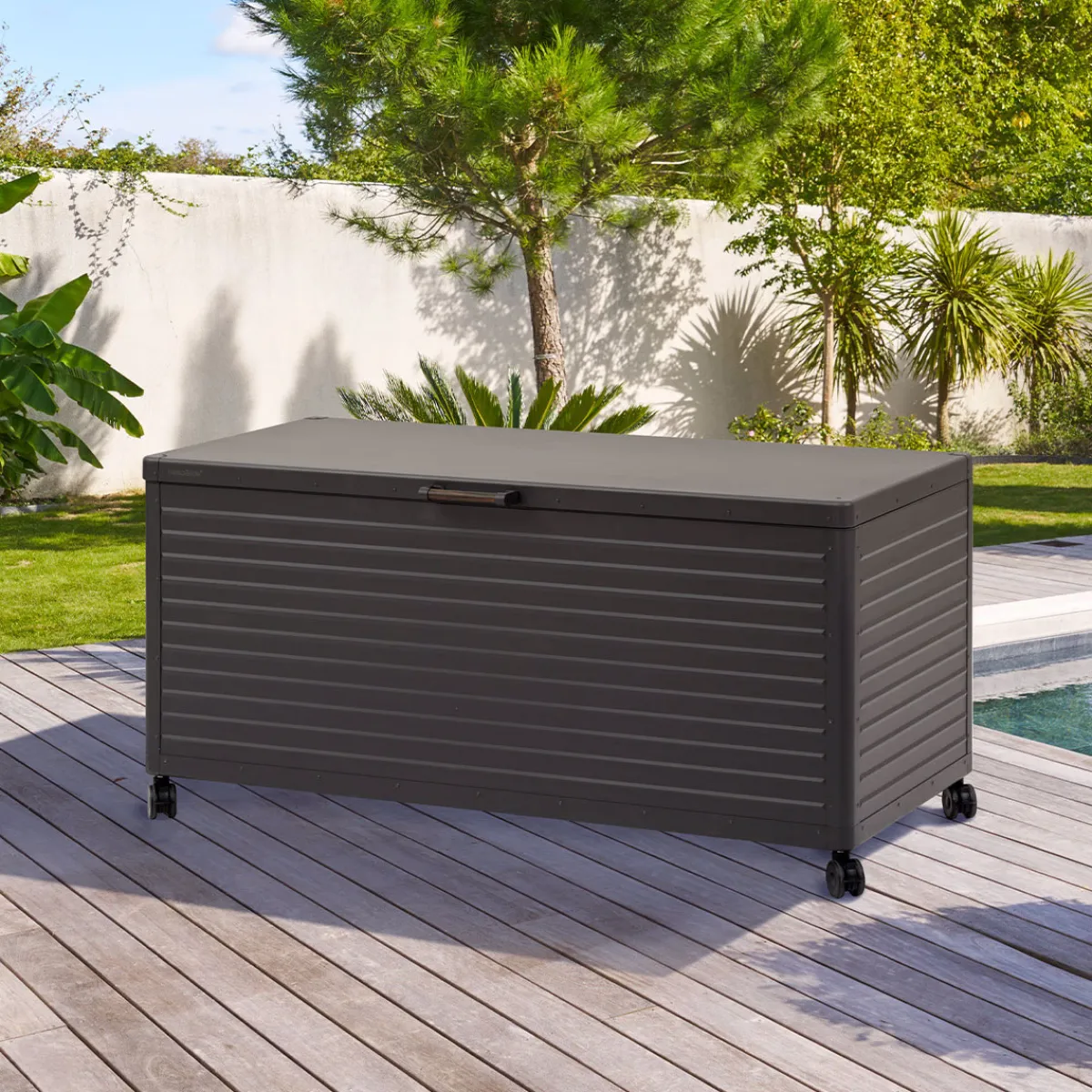 Baúl de almacenaje EDENIO de acero gris | 182x89x78cm | Estructura tratada con epoxi antioxidante. Cierre de la tapa con 2 cilindros. Fácilmente maniobrable gracias a sus 4 ruedas. 1090L | Color: graphite | Medidas: 182x89x78cm | Material: Acero | Marca: Hespéride