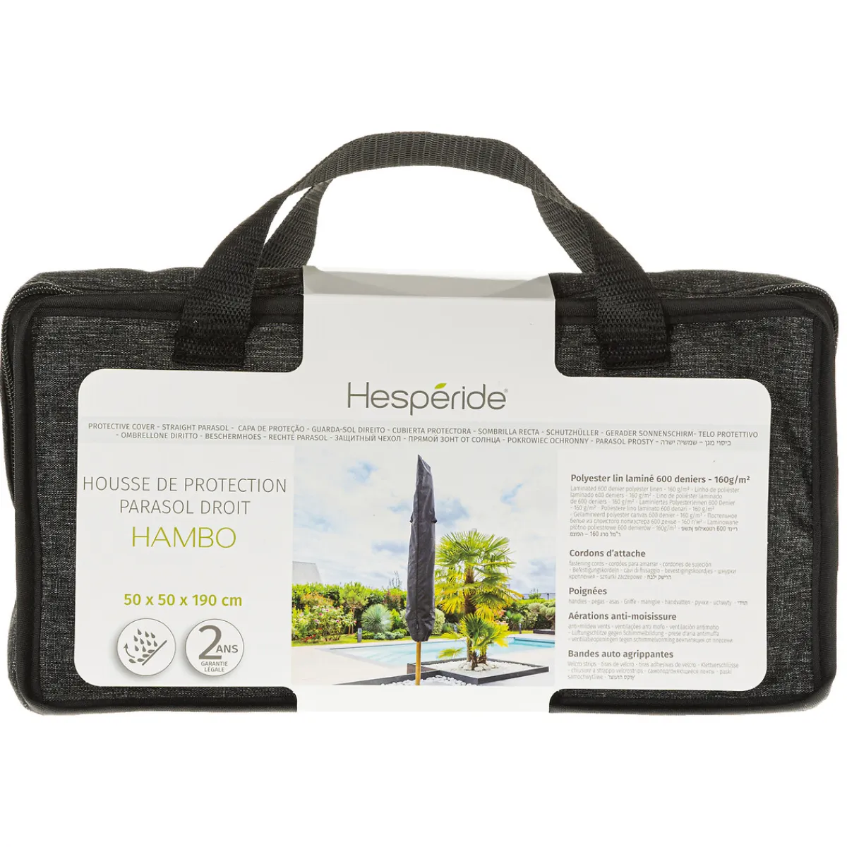Funda protectora para parasol 190cm | 190x50x50cm Poliéster | Prolonga la vida de tu parasol con esta funda protectora. Esta funda protectora recubierta de poliéster y poliuretano protege tu parasol en caso de inclemencias del tiempo y le permite mantenerla impecable durante más tiempo. | Color: Gris oscuro | Medidas: 190x50x50cm | Material: Poliéster | Marca: Hespéride