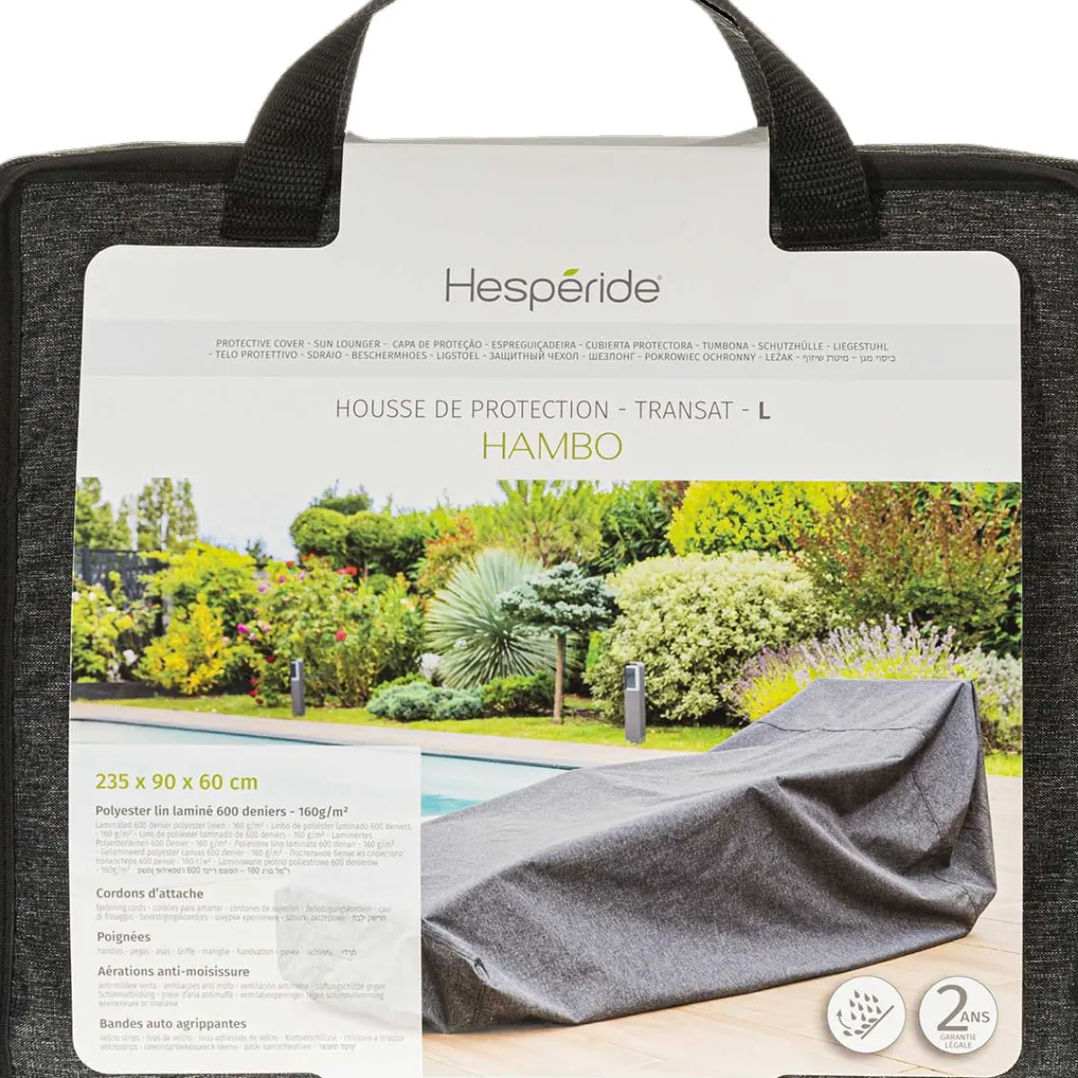 Funda protectora para tumbona L | ¡Protege tu tumbona de jardín gracias a esta funda protectora! Esta funda protectora de poliéster recubierta de poliuretano la protegerá de las inclemencias del tiempo. Su color se integrará fácilmente en tu jardín | Color: Gris oscuro | Medidas: 60x90x235cm | Material: Poliéster | Marca: Hespéride