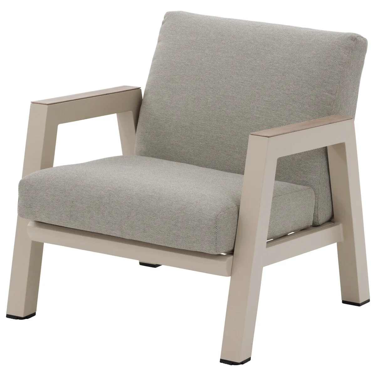 Juego de jardín AXIOME argile 5 plazas | Estructura tratada con epoxi antioxidante | Artículo compuesto por un sofá de 3 plazas 207x79x69cm; 2 sillones 77x79x69cm; una mesa 120x65x33cm | Fundas de cojines extraíbles para facilitar la limpieza. El tejido hidrófugo permite que el agua resbale sin penetrar en el material. Producto tratado contra la decoloración. Pies ajustables para compensar las irregularidades del terreno y proporcionar una mayor estabilidad. | Color: argile | Material: Aluminio, Poliéster | Marca: Hespéride