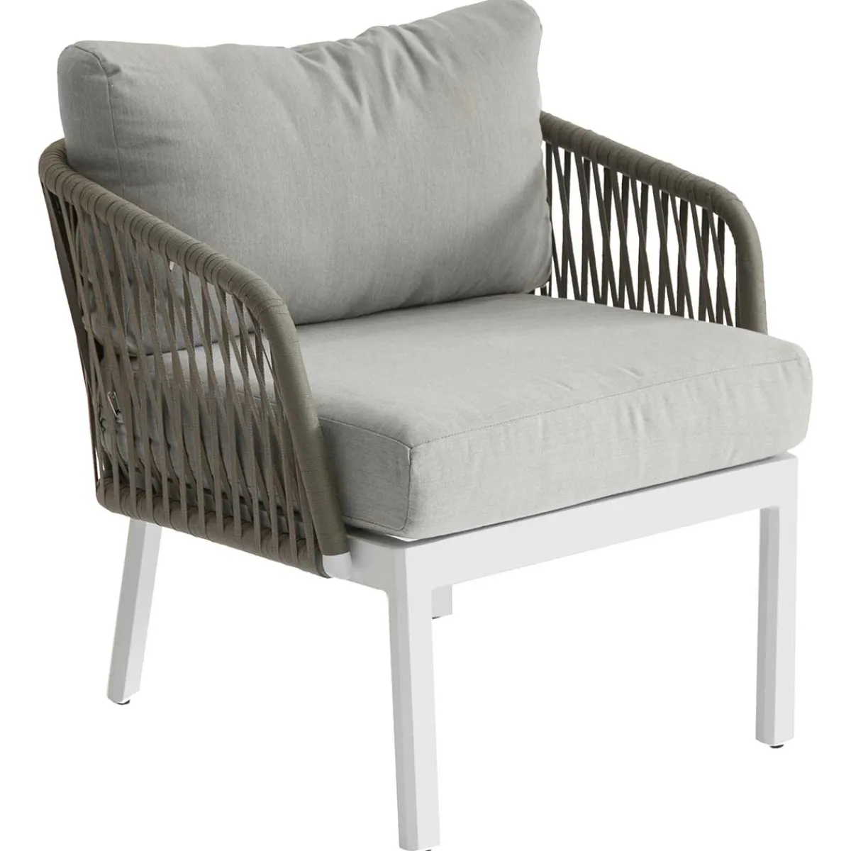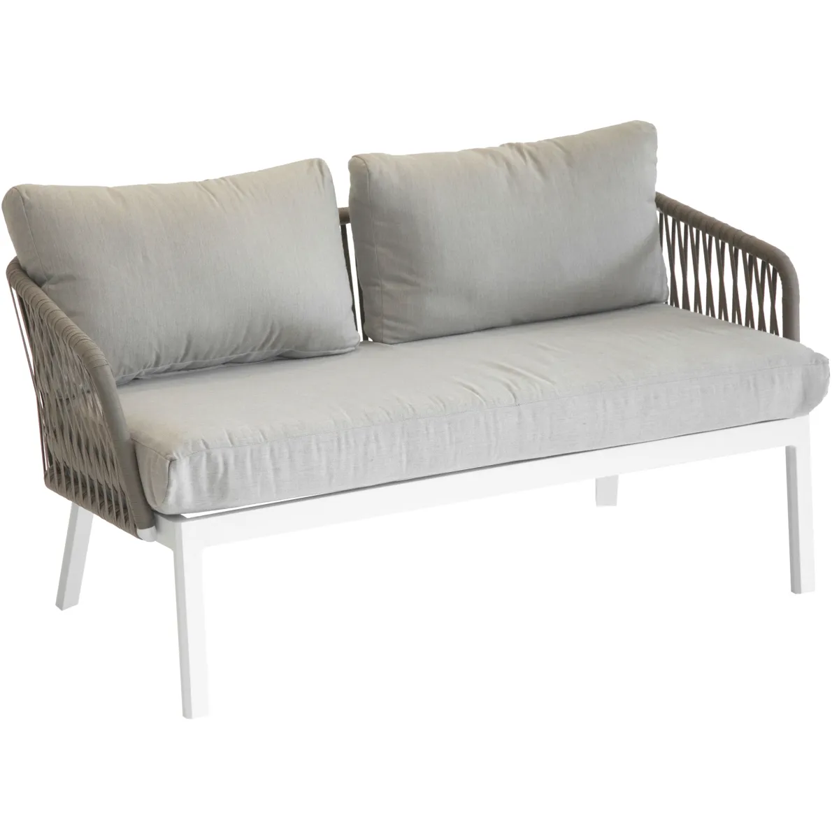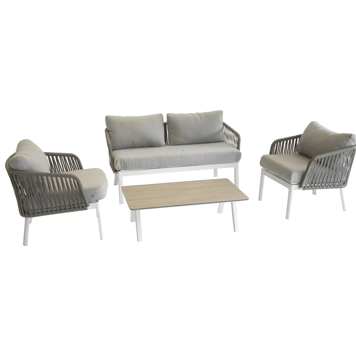 Juego De Jardín Barcelone 4 Plazas | 2 Sillones: 67x74x70cm, Sofá 2 Plazas: 67x74x140cm, Mesa de Centro: 32x60x100cm | Estructura antioxidante con tratamiento epoxi | Se puede quitar la funda de los cojines para facilitar la limpieza | Tejido con tratamiento hidrófugo, que permite que el agua se escurra sin penetrar en el material | Producto tratado contra la decoloración | Color: Blanco | Material: Aluminio, Acrílico | Marca: Hespéride