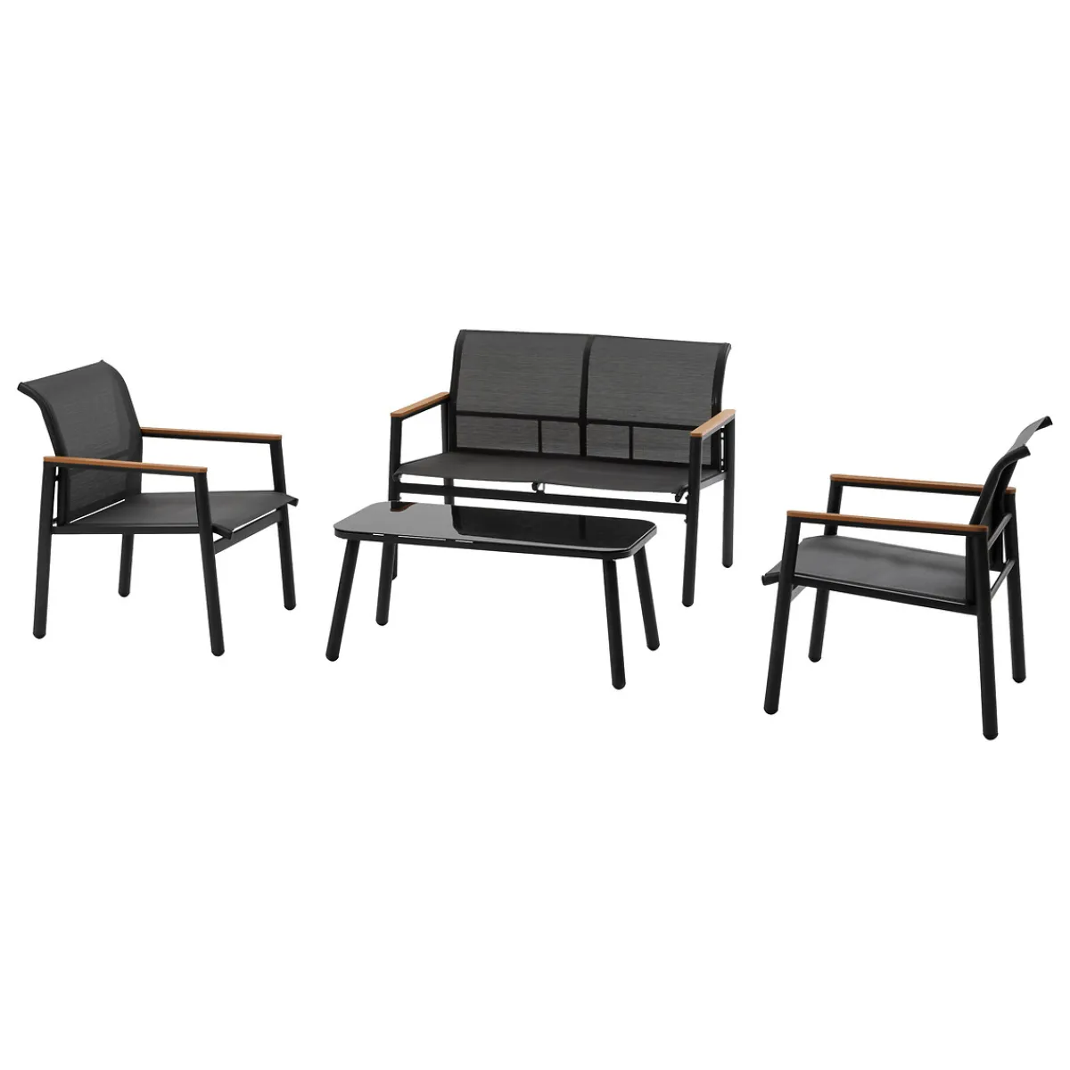 Juego de jardín RELAX 4 plazas gris oscuro | Acero y Textilene | Color: Gris oscuro | Material: Acero, textileno y vidrio templado | Marca: Hesperide