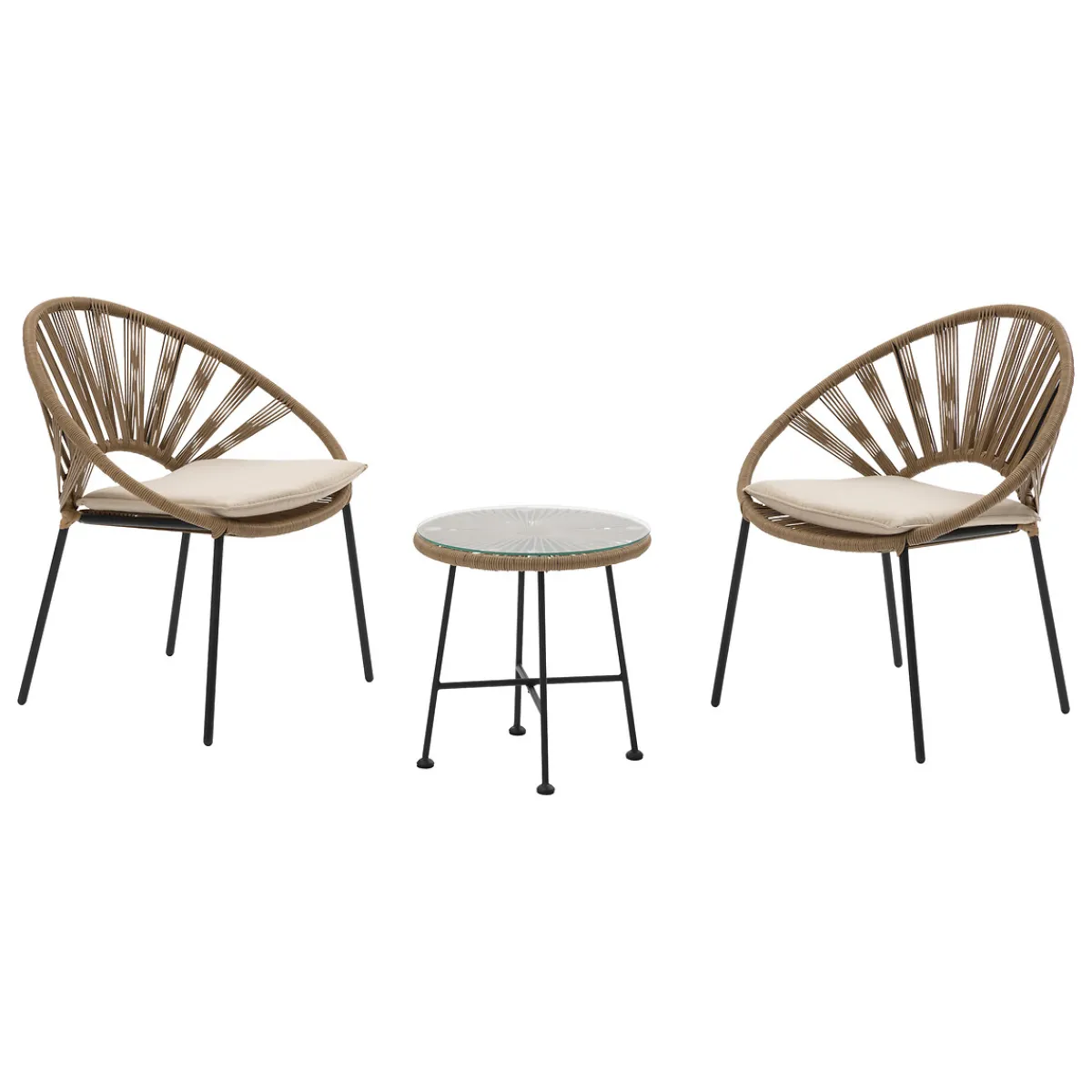 Set de jardín RELAX | 2 plazas | Juego compuesto por 2 sillas 67.5x65x80cm y mesa auxiliar 45x46cm | Material: ratán sintético y acero