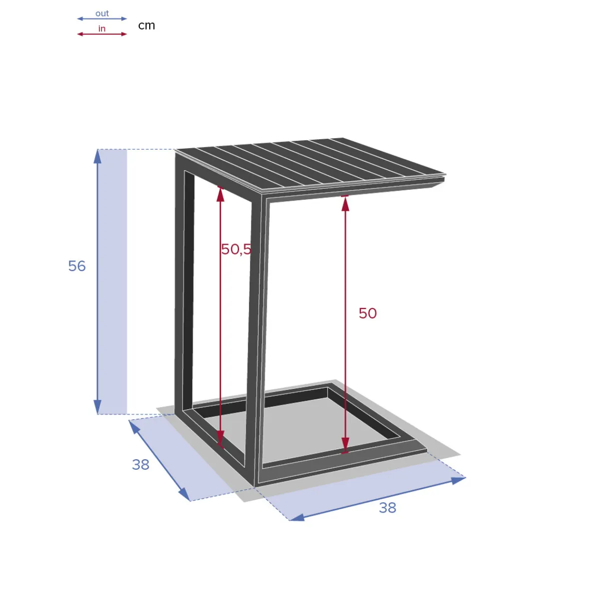 Mesa auxiliar EVASION argile | 56x38x38cm | Estructura tratada con epoxi antioxidante y resistente a los rayos UV | Color: Arcilla | Medidas: 56x38x38cm | Material: Aluminio | Marca: Hespéride