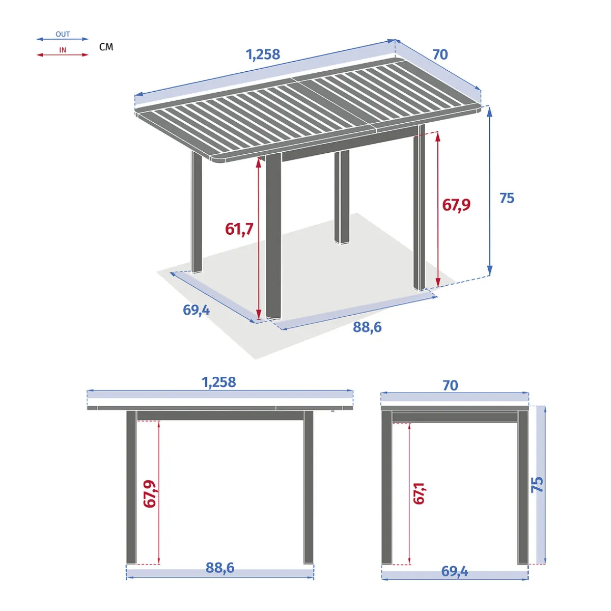 Mesa extensible FOLYA de aluminio y madera de eucalipto | Para 4 Personas | 89-125x70x75cm | Madera FSC, protegida con barniz o aceite. Estructura tratada con epoxi antioxidante. Fácil de montar. Gracias a su extensión plegable, la mesa se adapta al número de comensales | Marca: Hésperide