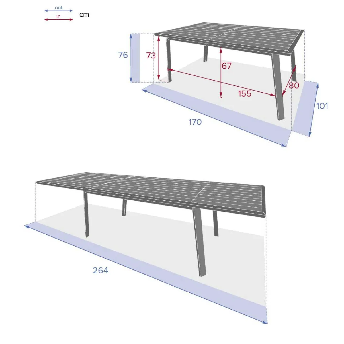Mesa extensible PAVANE gris graphite 170-264cm | Hasta 10 plazas | Listones de Aluminio | Longitud de Extensión: 94cm | Estructura tratada con epoxi. Producto tratado contra la decoloración. Gracias a su extensión en forma de mariposa, la mesa se adapta al número de comensales descrito previamente. Las patas de la mesa son ajustables para compensar las irregularidades del suelo y proporcionar una mayor estabilidad. Para una mayor armonía, combina este producto con los de la gama Pavane | Color: Gris Grafito | Medidas: 76x101x170-264cm | Material: Aluminio | Marca: Hespéride