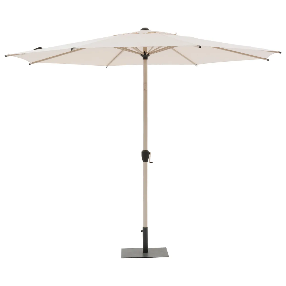 Parasol LOOMPA argile blé 3m | Base no incluida | Apertura por manivela | Sistema de inclinación | Chimenea de ventilación para facilitar la circulación del aire | Lona atornillada al extremo de las varillas para un mejor mantenimiento de la lona | Cierre elástico de mariposa | Color: trigo | Medidas: 2,5x3m | Material: Aluminio, Acero, Poliéster | Marca: Hespéride