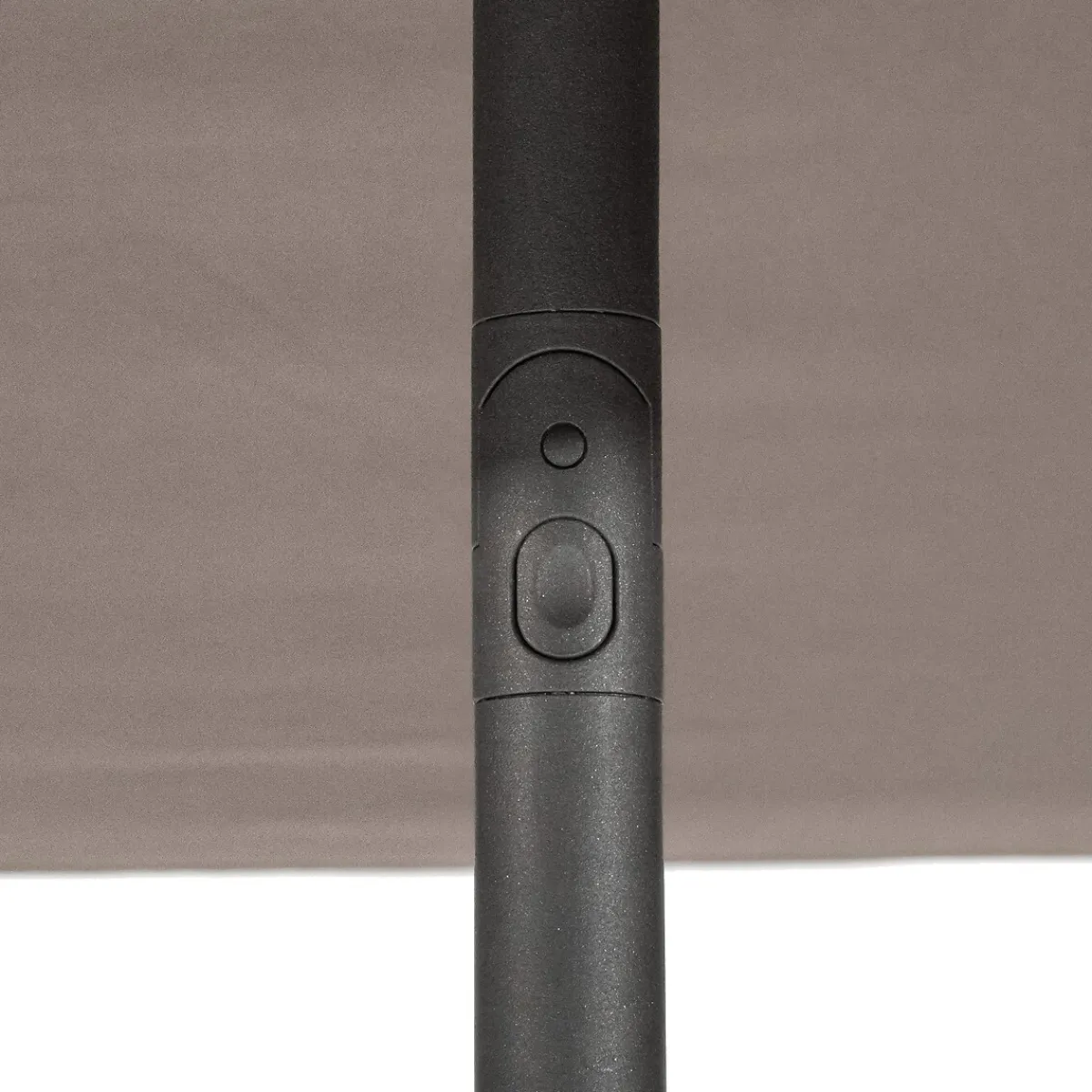 Parasol SOYA gris pardo 2.5×2.5m | Base no incluida | Apertura push-up | Sistema de inclinación | Chimenea de ventilación para facilitar la circulación del aire | Cremallera elástica de mariposa | Lona atornillada al final de las varillas para un mejor mantenimiento de la lona | Color: Gris pardo, Negro | Medidas: 2.29×2.5×2.5m | Material: Acero, Poliéster | Marca: Hespéride