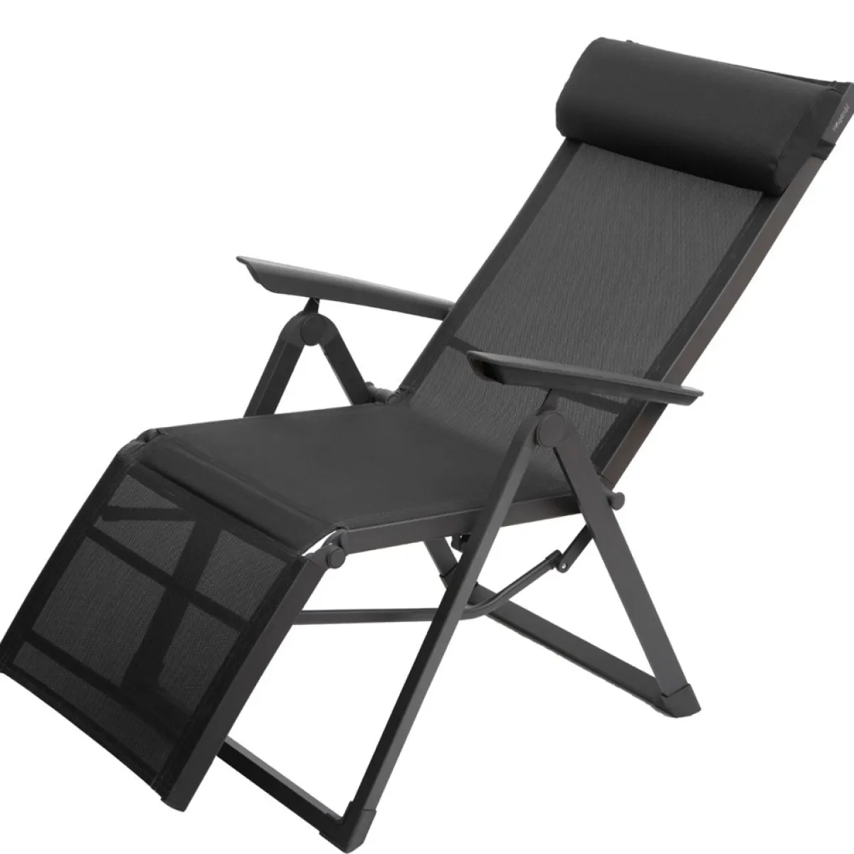 Sillón DECIMA gris antracita | 116x65x75.3cm | Disfrute de momentos de relax con la silla de jardín Decima de Hespéride, con estructura de aluminio y asiento de textilene antracita | El reposacabezas es extraíble y la silla se reclina en 8 posiciones para un confort total | Fácil de guardar, se puede plegar en vertical | Color: Gris oscuro | Medidas: 116x65x75.3cm | Material: Aluminio, Textilene | Marca: Hespéride