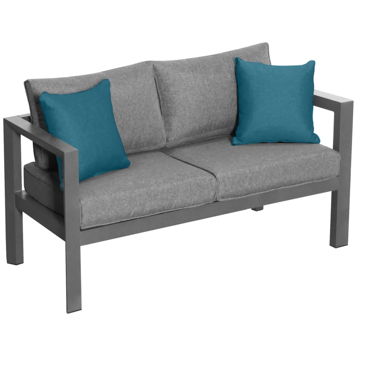 Sofá Evasion Gris Grafito 2 Plazas | Estructura con tratamiento epoxi antioxidante | Cojines resistentes a los rayos UV con fundas extraíbles para facilitar su limpieza | Color: Gris | Medidas: 65x71x141cm | Material: Aluminio | Marca: Hespéride