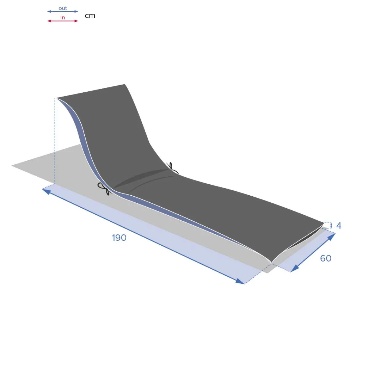 Cojín para tumbona KORAI gris | Medidas: 60x190cm 210 g/m² | Revestimiento que permite que el agua resbale sin penetrar en el material | Funda de cojín extraíble: Fácil de limpiar