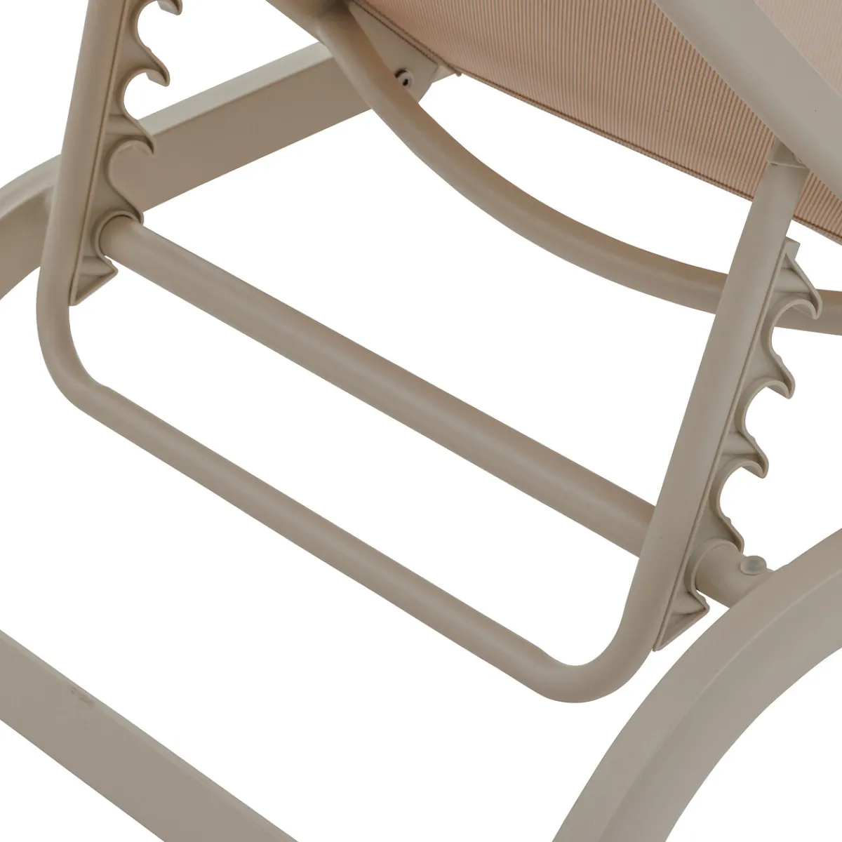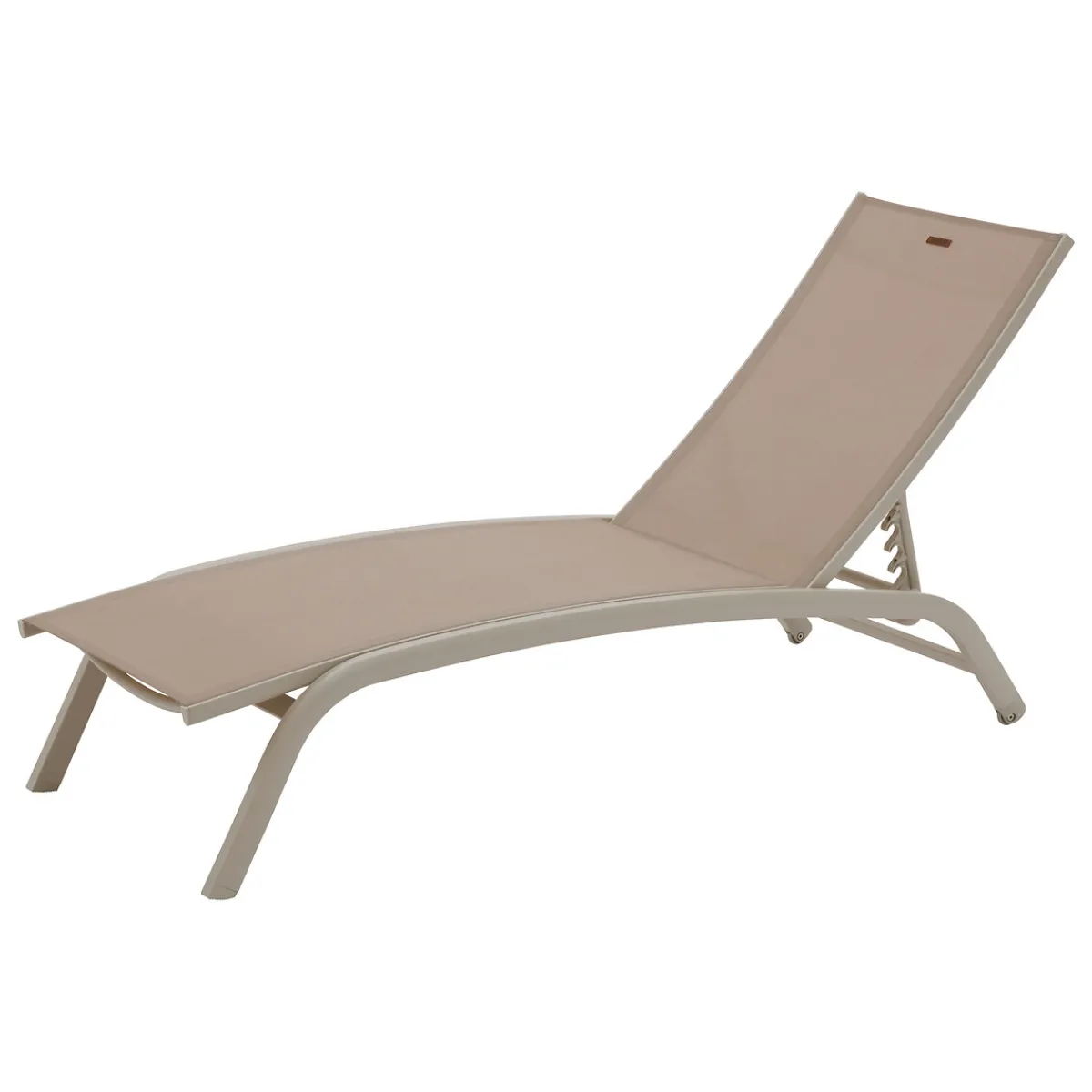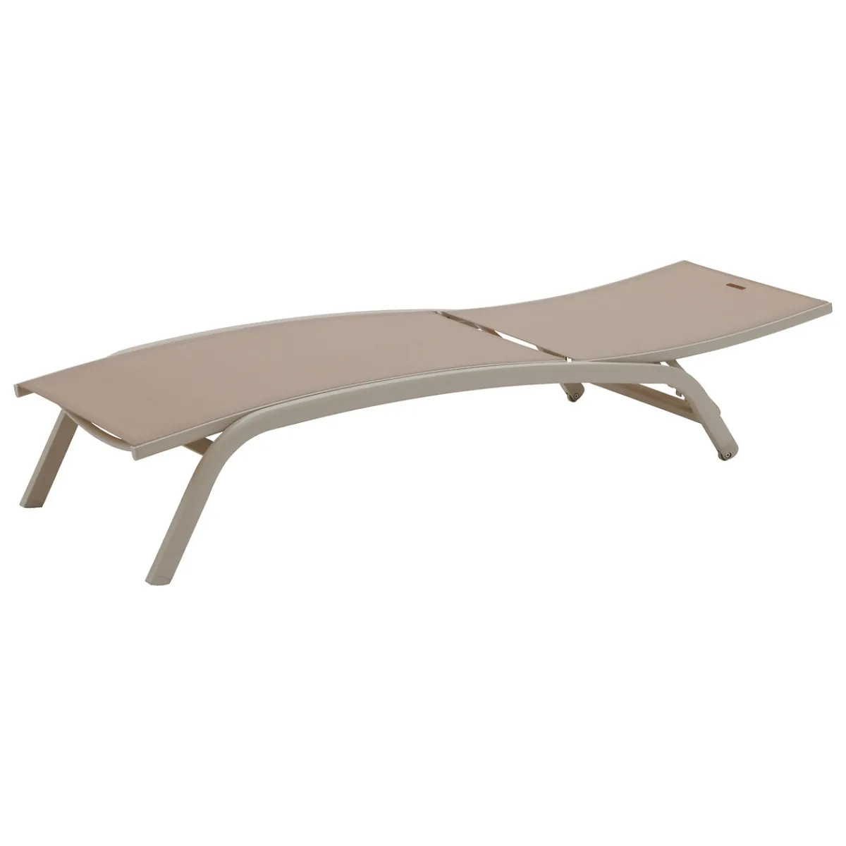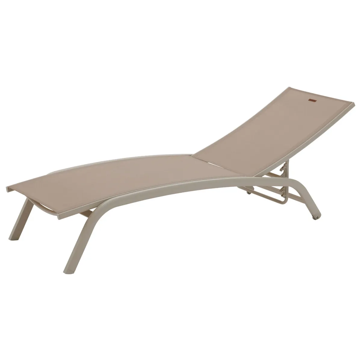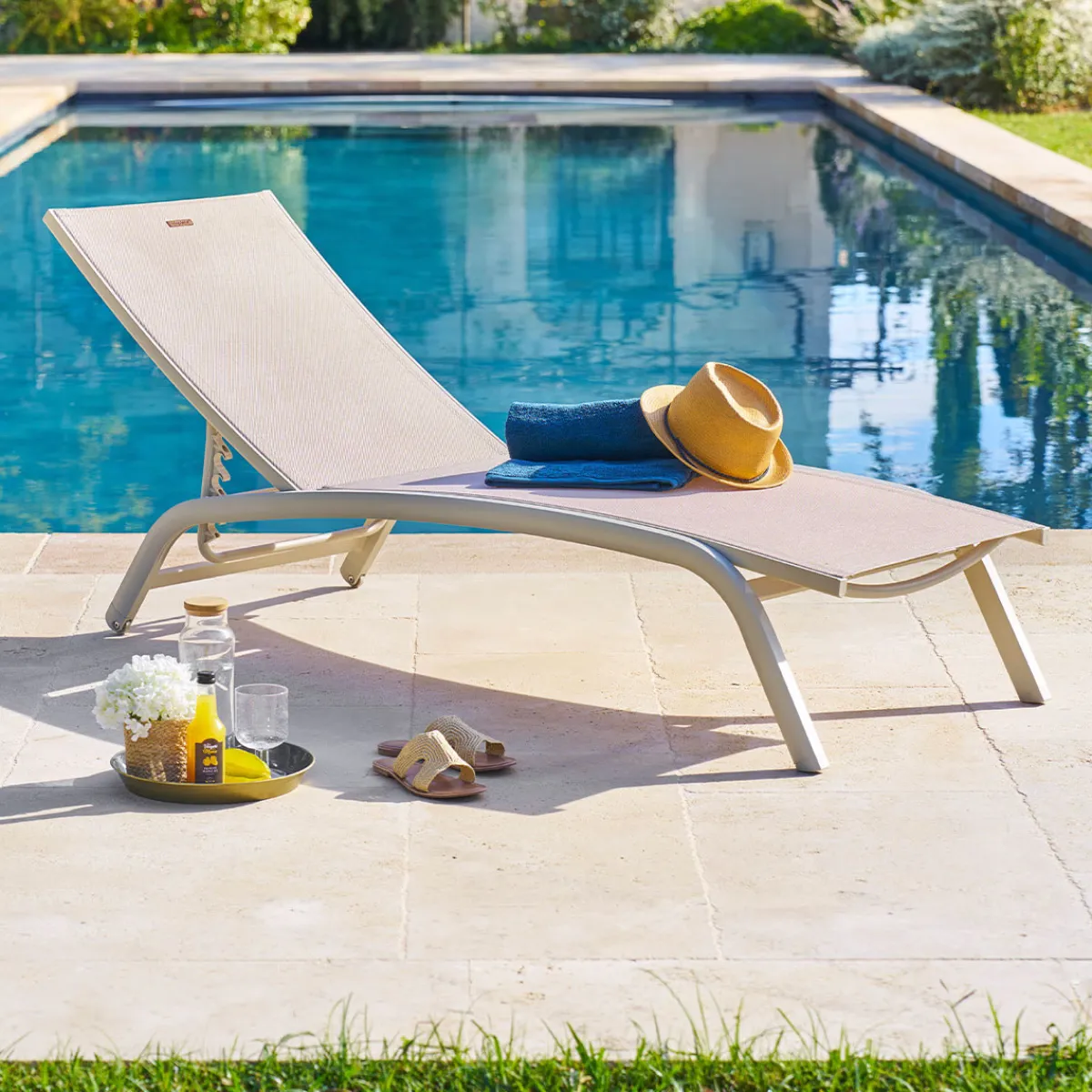 Tumbona BONAO lino e argile | 4 posiciones | 83x64x194cm | Estructura con tratamiento epoxi antioxidante | Producto apilable, fácil de guardar para un verdadero ahorro de espacio | Hasta 4 posiciones de reclinado. Posición 100% tumbada para un confort óptimo | Fácil de desplazar gracias a las ruedas | Producto tratado contra la decoloración | Color: Lin y Argile | Medidas: 83x64x194cm | Material: Aluminio, Textilene | Marca: Hespéride