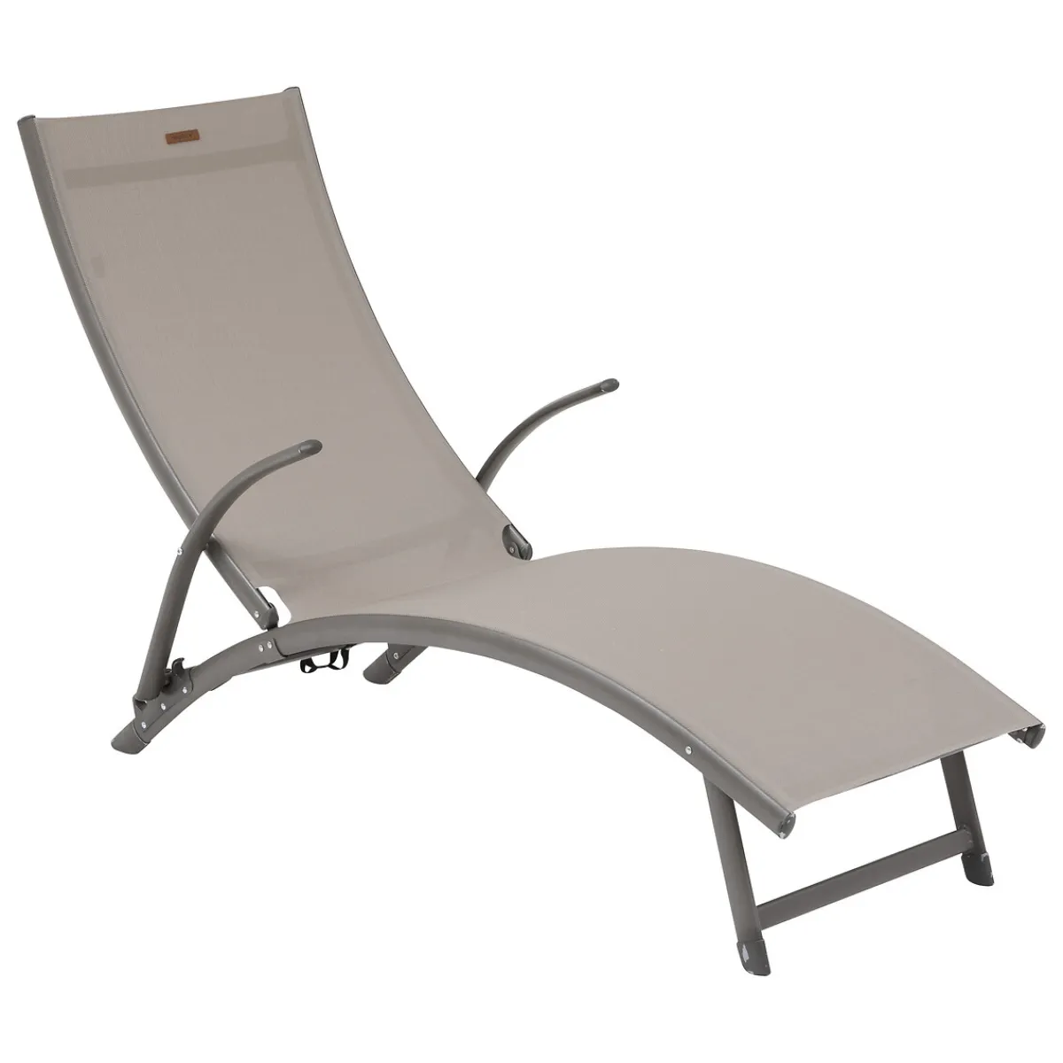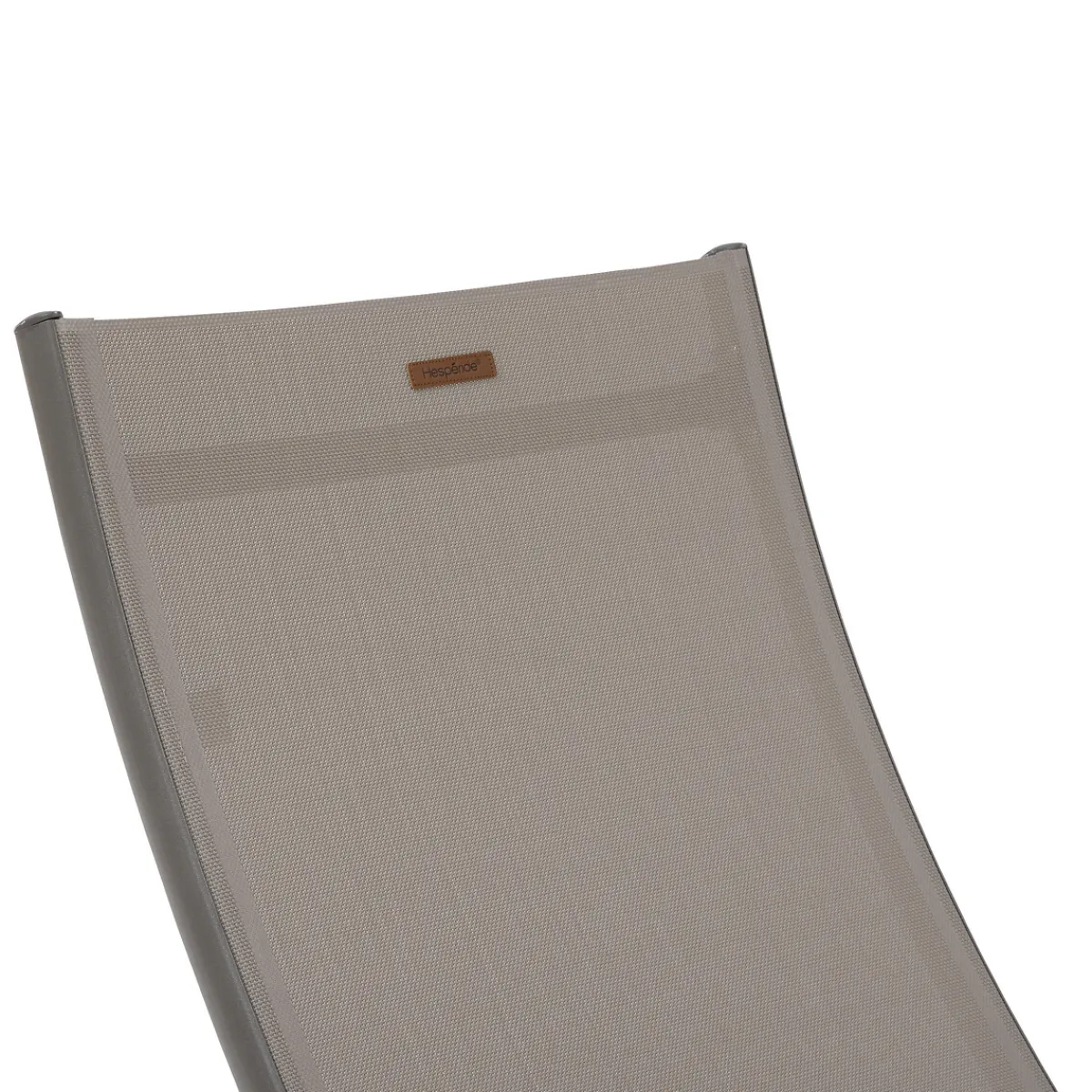 Tumbona SAMBA noisette y praline | Estructura con tratamiento epoxi antioxidante. Producto plegable, fácil de guardar y perfecto para espacios reducidos. Producto apilable, fácil de guardar para un verdadero ahorro de espacio. Reposabrazos para un confort óptimo. Hasta 4 posiciones de reclinado. Compatible con la referencia 412392 para proteger sus muebles del sol y de la intemperie. Producto tratado contra la decoloración | Peso máximo soportado: 110kg | Color: Gris Pardo | Medidas: 99x59x174.5cm | Material: Aluminio | Marca: Hespéride