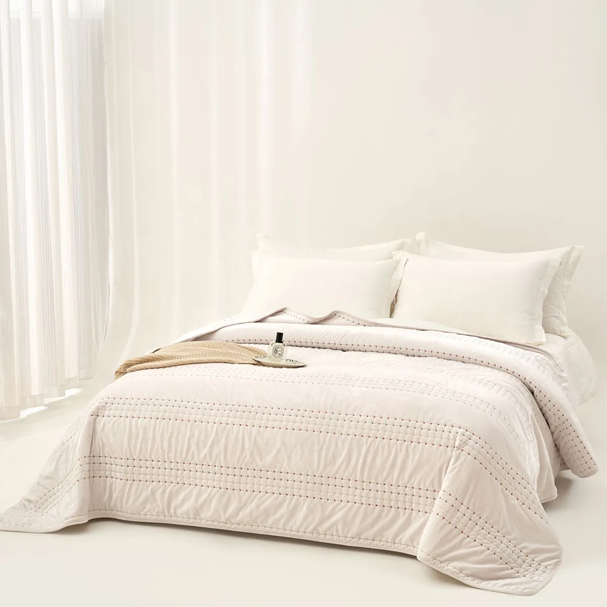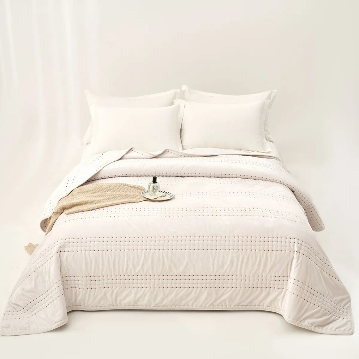 hôma Edredones Y Colchas>IVREA edredón de terciopelo beige 240x260cm