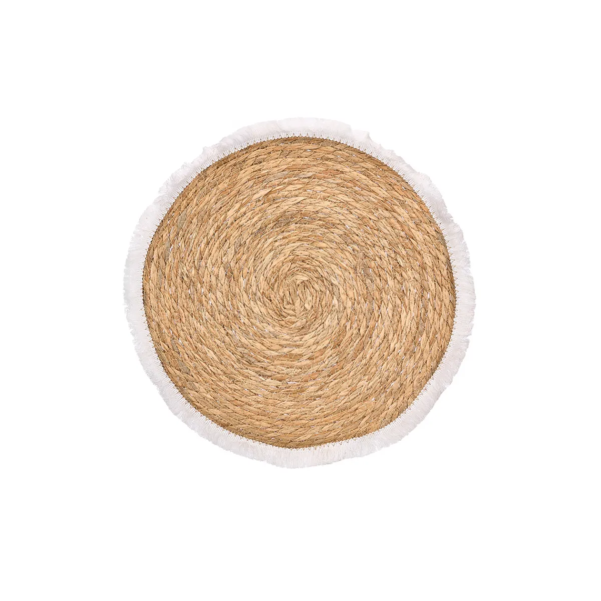 Mantel individual con flecos blanco 38cm | Viste tu mesa y cocina con nuestra colección de textiles de cocina. Manteles, servilletas para servir sin olvidar la funcionalidad de los delantales y paños de cocina. ¡Cada detalle es fundamental! | Color: Beige y Blanco | Medidas: 38cm | Material: Mimbre y Algodón