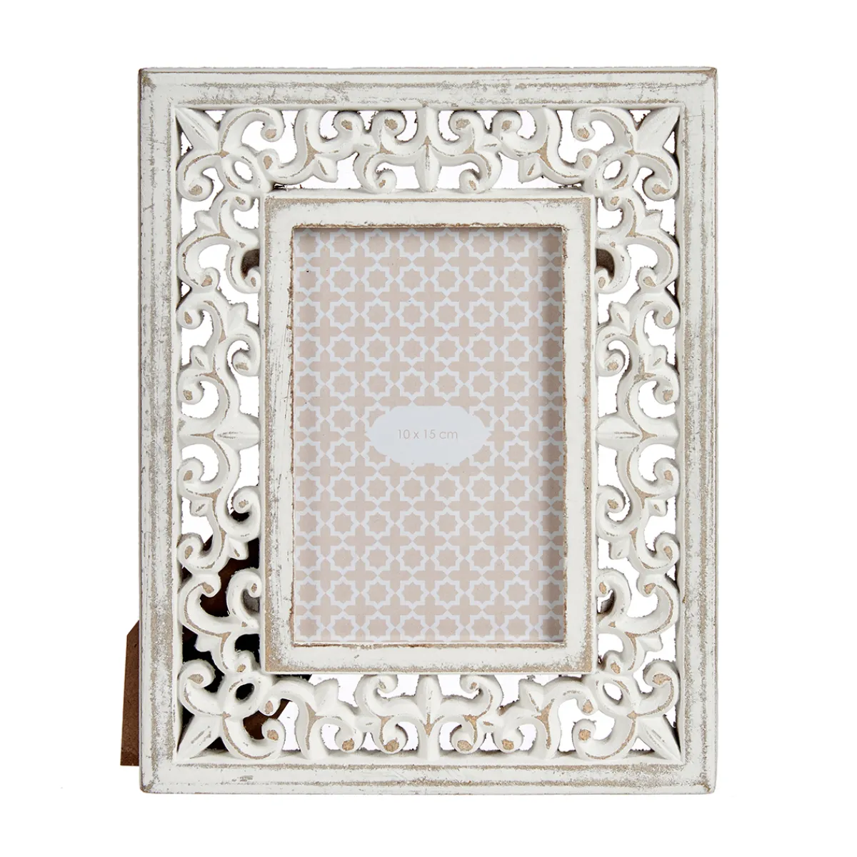 Marcos Y Fotos|Estilo Étnico>Portarretrato Madera Tallada Blanca 10x15cm