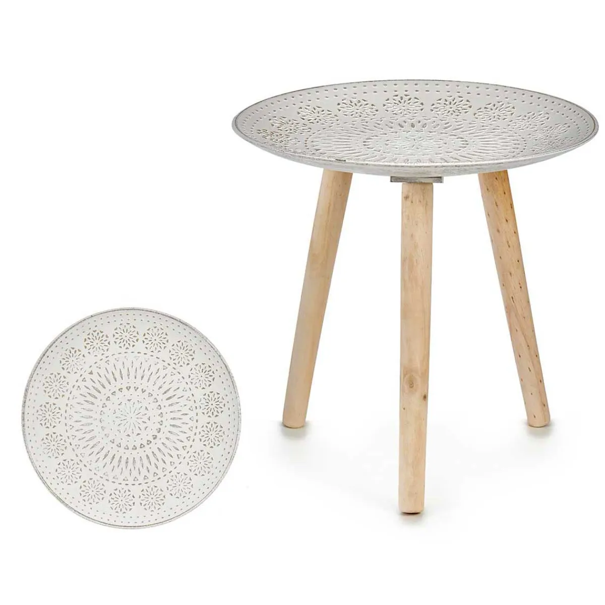 Mesa Auxiliar De Madera Tapa Decorativa Mandala | 39x40x40cm | Descubre las mesas auxiliares que tenemos para ti. Los muebles hôma fueron diseñados para Home Happy Living. Los mejores artículos de decoración están aquí | Color: Blanco, Beige | Medidas: 39x40x40cm | Material: Madera
