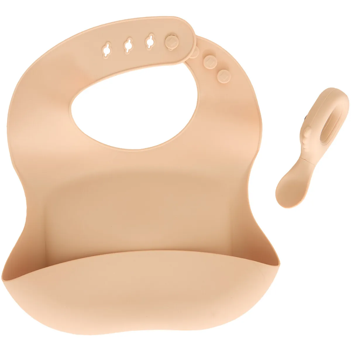 Set de babero y cuchara YUM beige | Los accesorios decorativos hôma kids transforman los espacios en un mundo encantado. Piezas decorativas pero también funcionales que aportan alegría y tranquilidad a los espacios de los más pequeños. | Color: Beige | Medidas: 26x2x22cm | Material: Silicona | Marca: Atmosphera