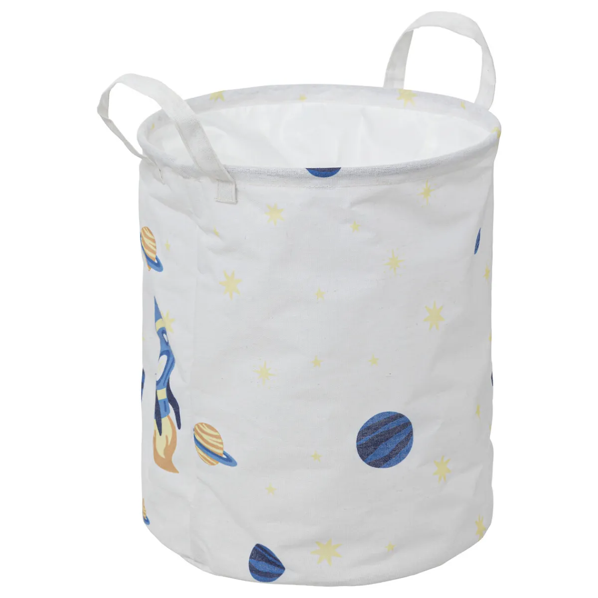 Cesto De Almacenaje Astronauta Con Asas 50cm | Espacioso y funcional, este cesto de juguetes se cierra completamente y tiene dos asas para facilitar su transporte. | Con las soluciones de almacenaje y organización los niños aprenden desde temprano que cada cosa tiene su lugar y crecen en espacios organizados. Descubre mas propuestas hôma Kids en homastores.com | Color: Blanco, Azul | Medidas: 50x32x32cm | Material: Algodón, Poliéster | Marca: Atmosphera4Kids