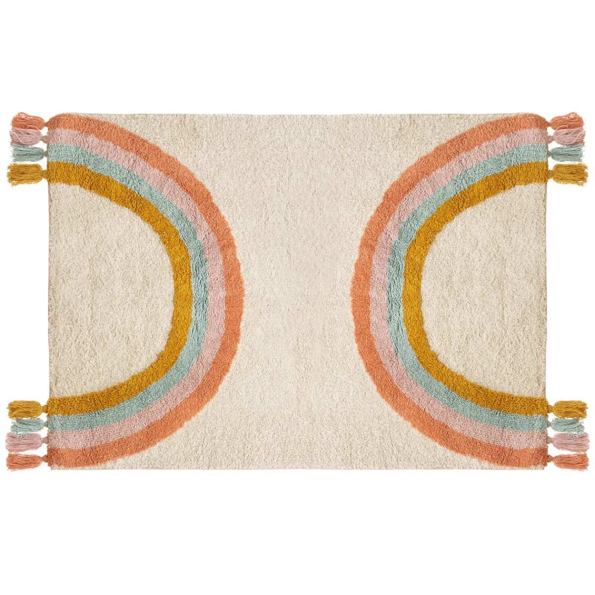 Alfombra arcoíris TUFT RAINBOW con flecos | Descubre la colección textil hôma kids. ¡Soluciones de decoración y confort con estampados únicos y mágicos! Cortinas, cojines, alfombras, mantas y un sinfín de propuestas muy confortables para el bebé y el niño | Color: Multicolor | Medidas: 100x150cm | Material: Algodón