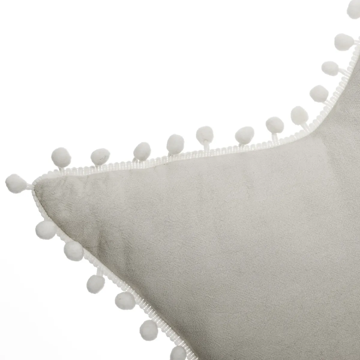 Cojín Estrella Gris Con Pompones | Descubre la colección textil hôma kids. ¡Soluciones de decoración y confort con estampados únicos y mágicos! Cortinas, cojines, alfombras, mantas y un sinfín de propuestas muy confortables para el bebé y el niño | Cojines decorativos | Color: Gris claro | Medidas: 50x4x50cm | Material: Algodón , Poliéster | Marca: Atmosphera