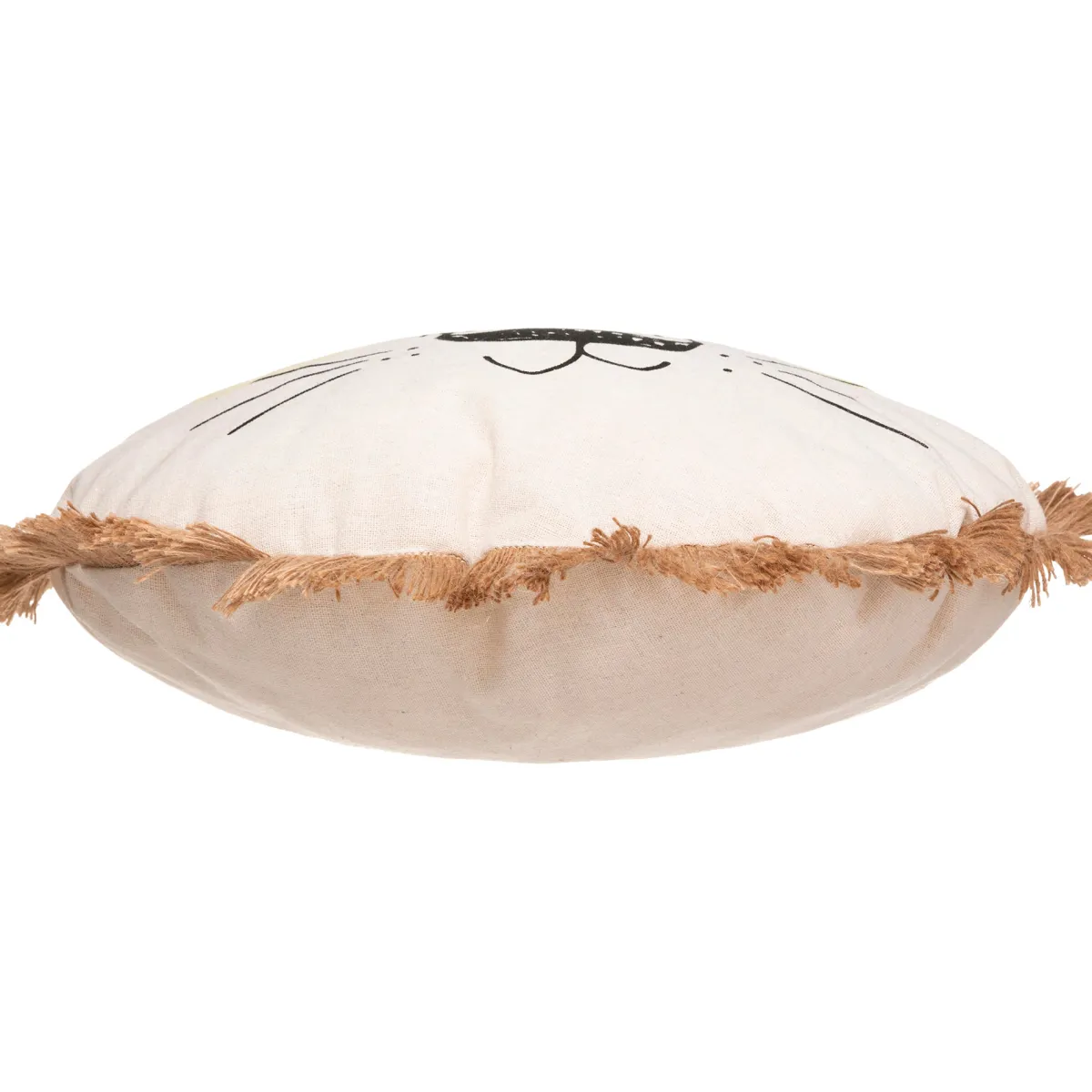 Cojín León Con Flecos | Descubre la colección textil hôma kids. ¡Soluciones de decoración y confort con estampados únicos y mágicos! Cortinas, cojines, alfombras, mantas y un sinfín de propuestas muy confortables para el bebé y el niño | Color: Marrón, Beige | Medidas: 44x13x44cm | Material: Poliéster, Yute | Marca: Atmosphera4Kids