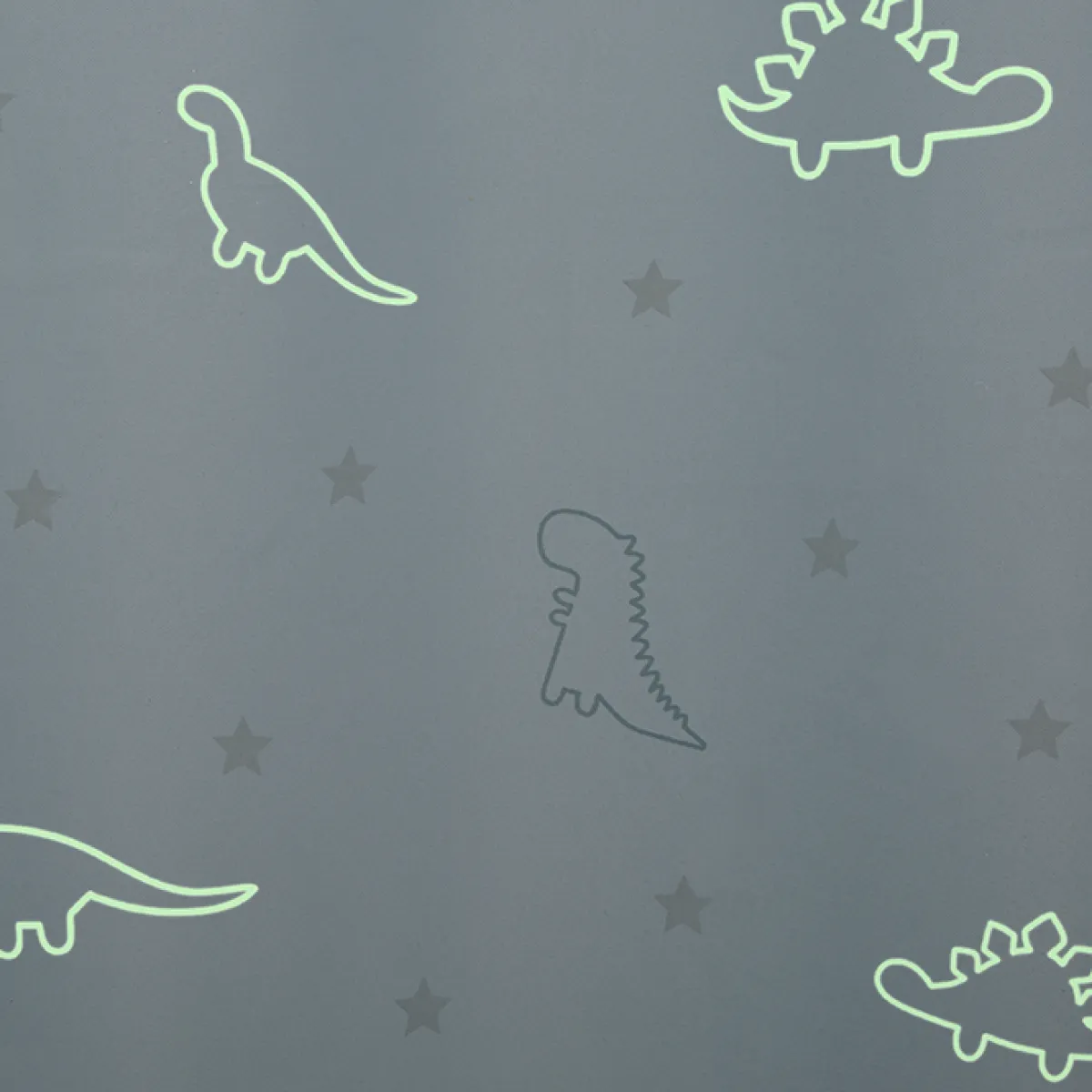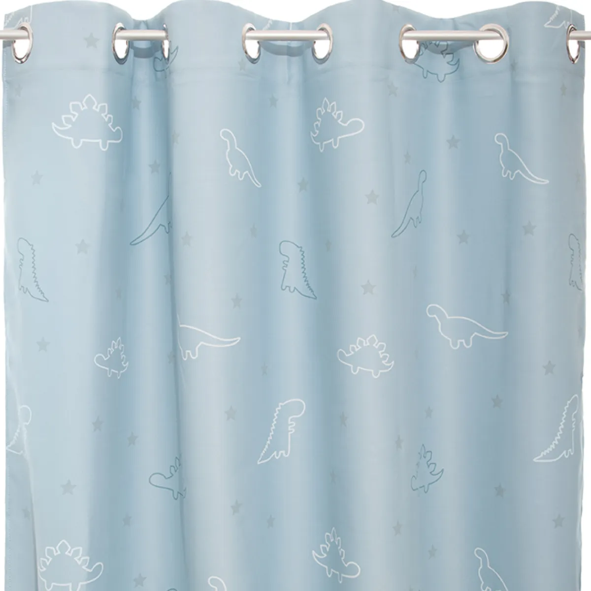 Cortina Dinosaurios Azul | ¿Estrellas que brillan en la oscuridad? Sí, ¡es posible! Durante el día, una delicada cortina azul con pequeños detalles de dinosaurios y estrella | Brilla cuando se expone al sol | Sus anillas permiten colgarla fácilmente | Instrucciones de limpieza/mantenimiento: se recomienda lavar a mano a una temperatura máxima de 30° o lavar en seco; no blanquear; no utilizar secadora ni plancha | Medidas: 140x250cm | Material: Poliéster | Color: Azul