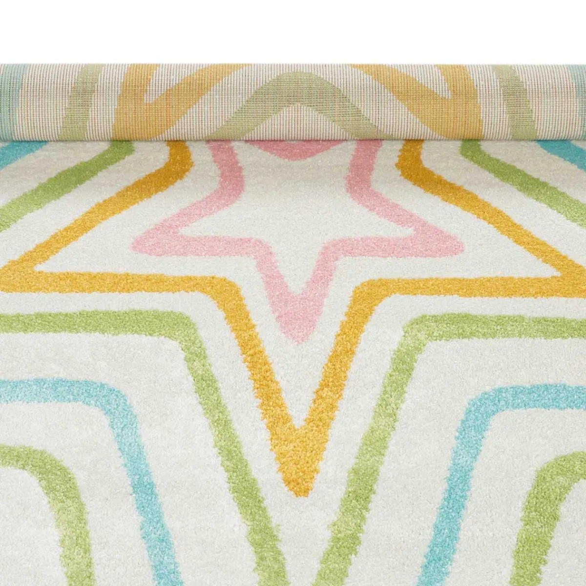 Alfombra Gio Estrella Multicolor | Descubre la colección textil hôma kids. ¡Soluciones de decoración y confort con estampados únicos y mágicos! Cortinas, cojines, alfombras, mantas y un sinfín de propuestas agradables para el bebé y el niño | Color: Multicolor | Medidas: 133x190cm | Material: Poliolefina